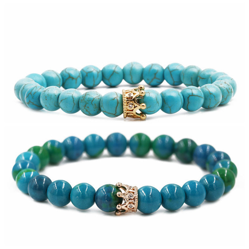 Phoenix Stone Turquoise Crown Couple Beaded Bracelet