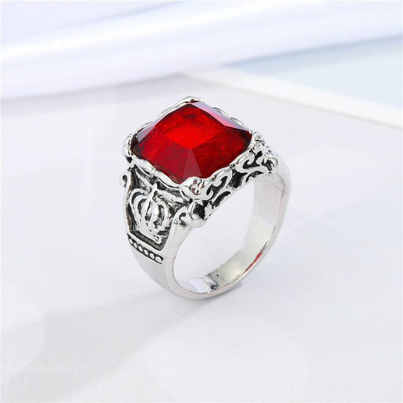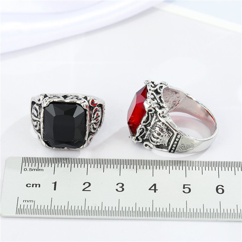 Vintage Fashion Square Gemstone Punk Alloy Ring for Men and Women
