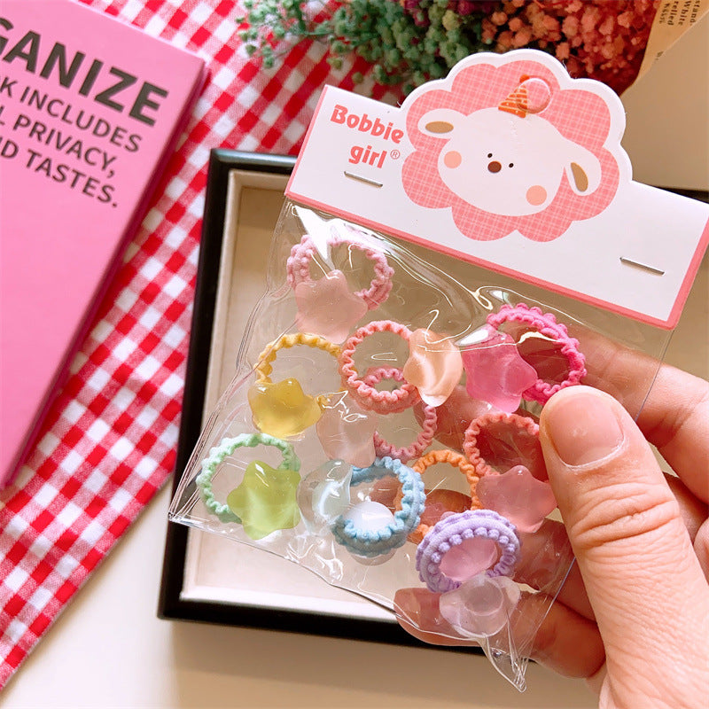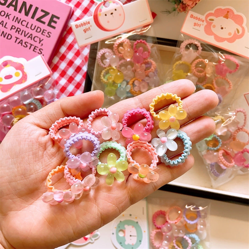 Kids' Classic Flower Hair Tie Set - Transparent Elastic Bands for Girls