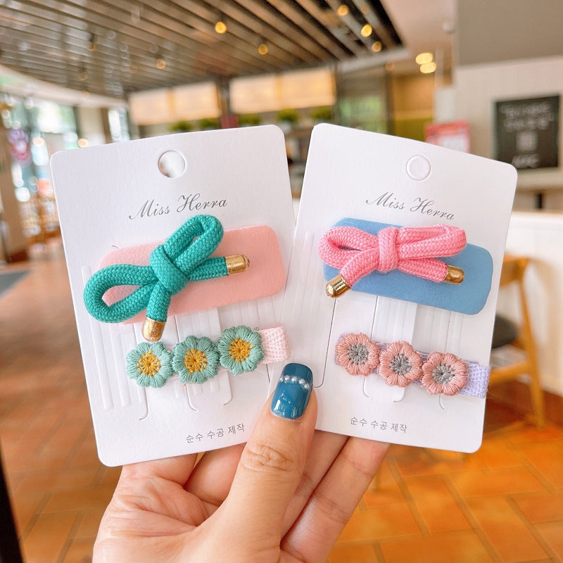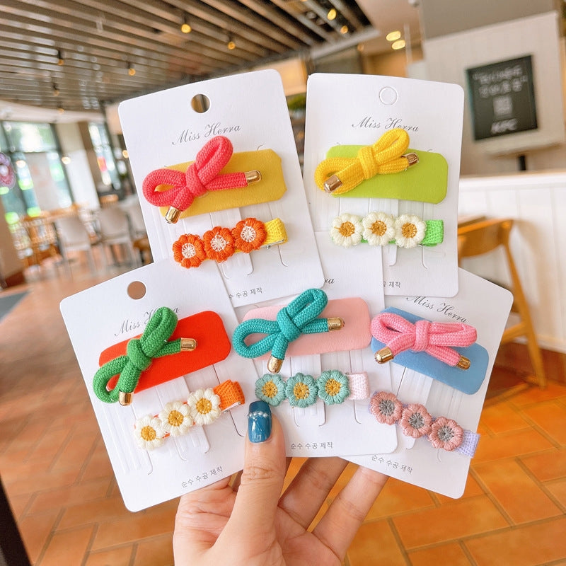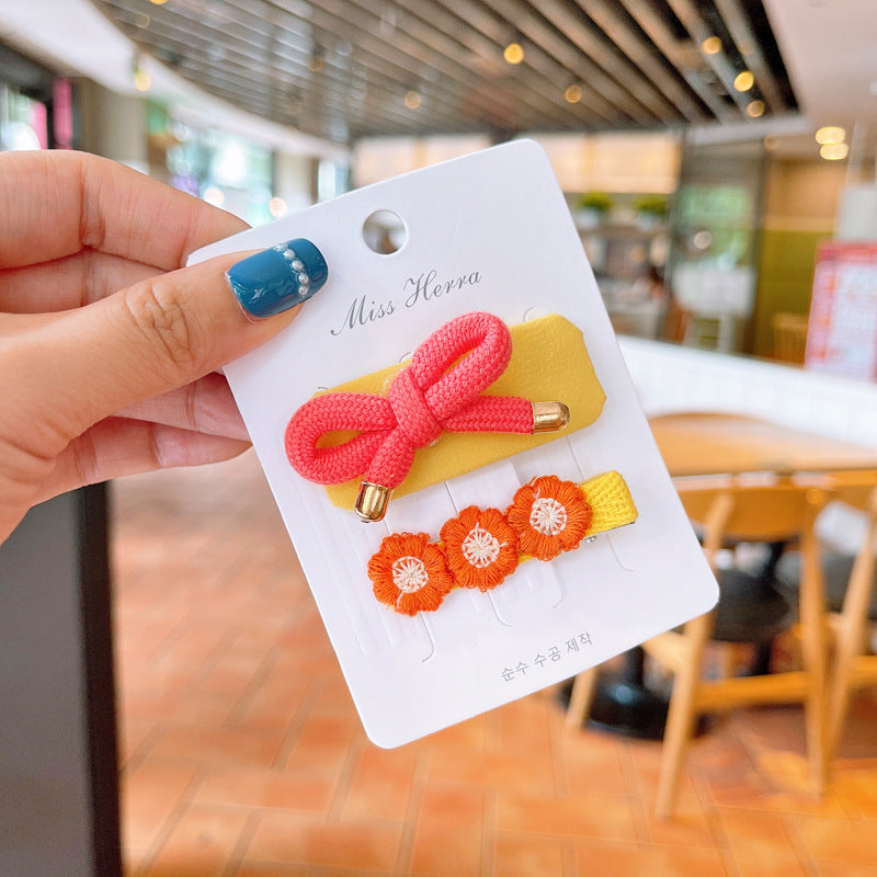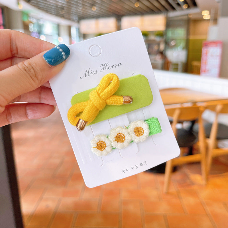 Kids' Floral Bow Knot Hair Clip - Embroidered Flower Design for Girls