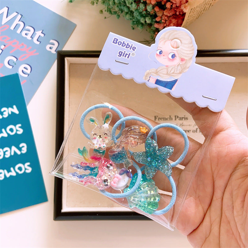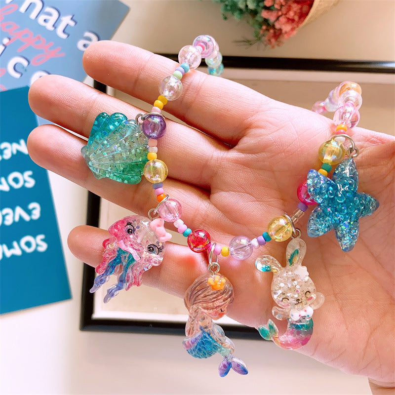 Children's Ocean Theme Resin Jewelry Set - Starfish, Mermaid, Shell Hair Accessories and Necklace
