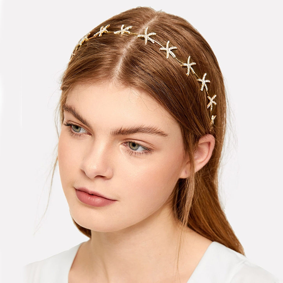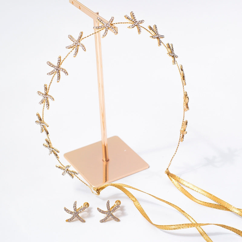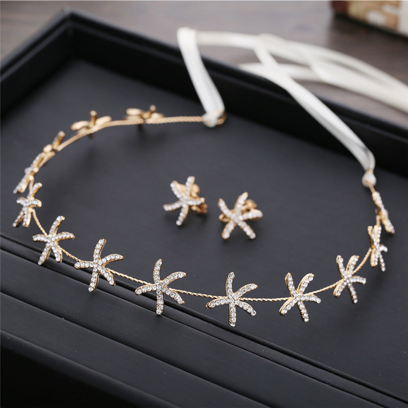 Korean Bridal Rhinestone Star Hairband and Ear Clip Set for Weddings
