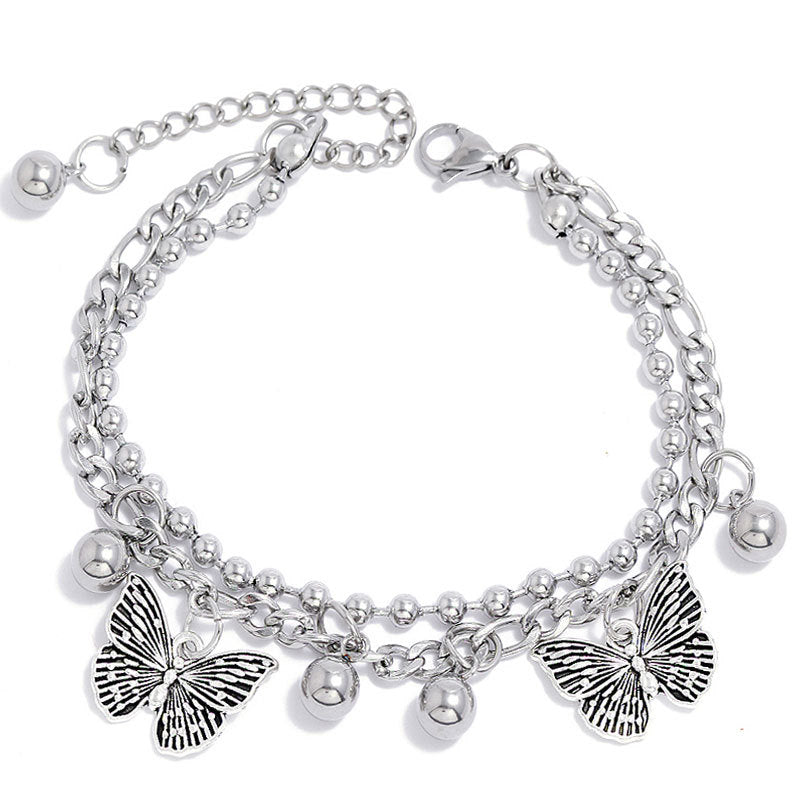 Korean Butterfly Heart Multi-layer Stainless Steel Bracelet