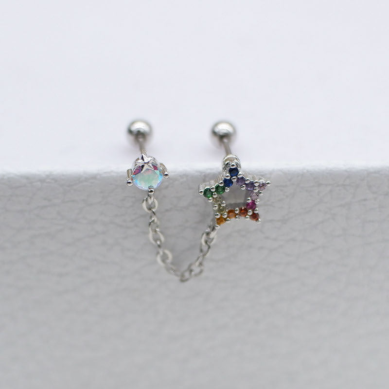 Korean Zircon Star Chain Earrings in Titanium Steel