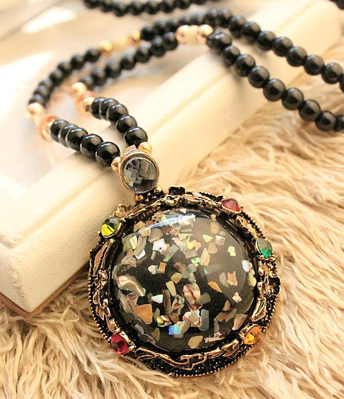 Korean Bohemian Colorful Shell Pendant Necklace with Crystal Beads and Cat Eye Stone