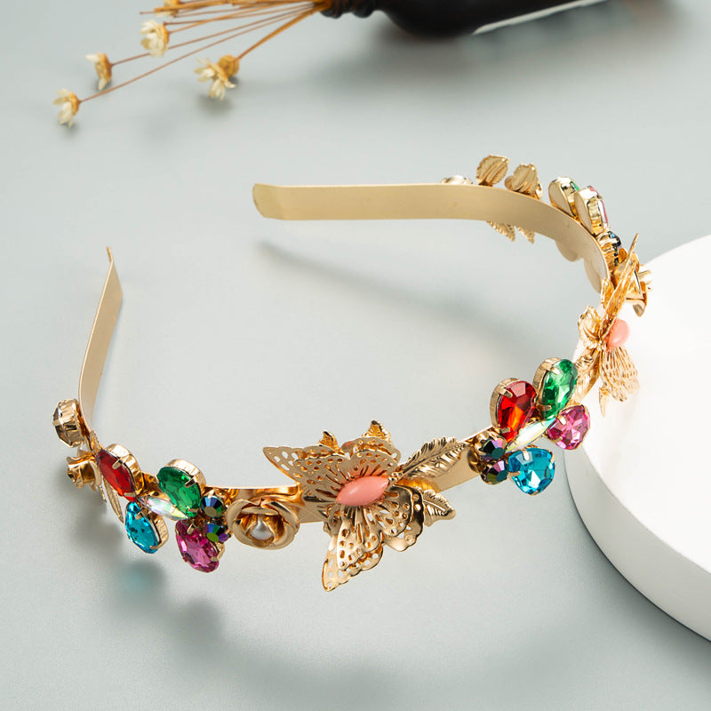 Korean Fashion Hollow Butterfly Flower Metal Headband with Rhinestones