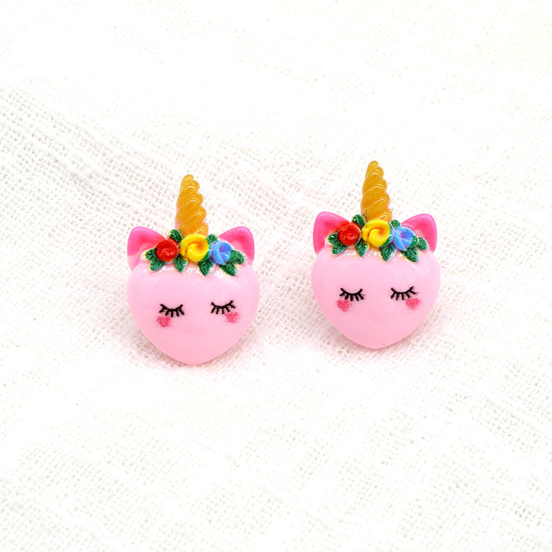 Korean Fashion Pink Resin Cartoon Unicorn Earrings