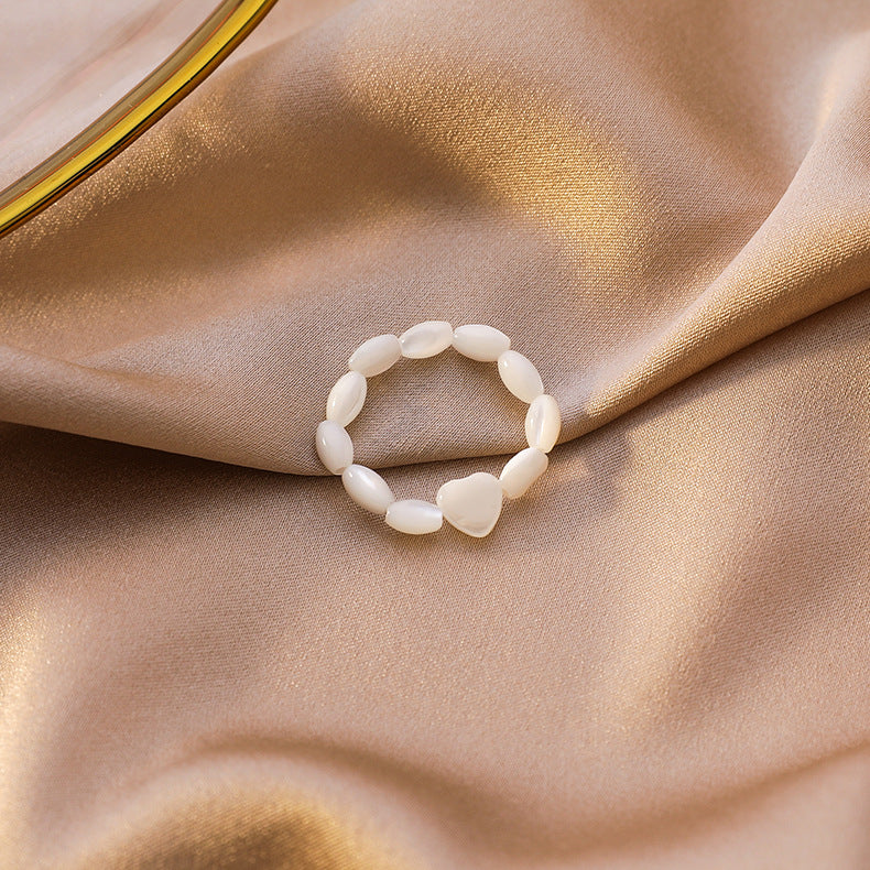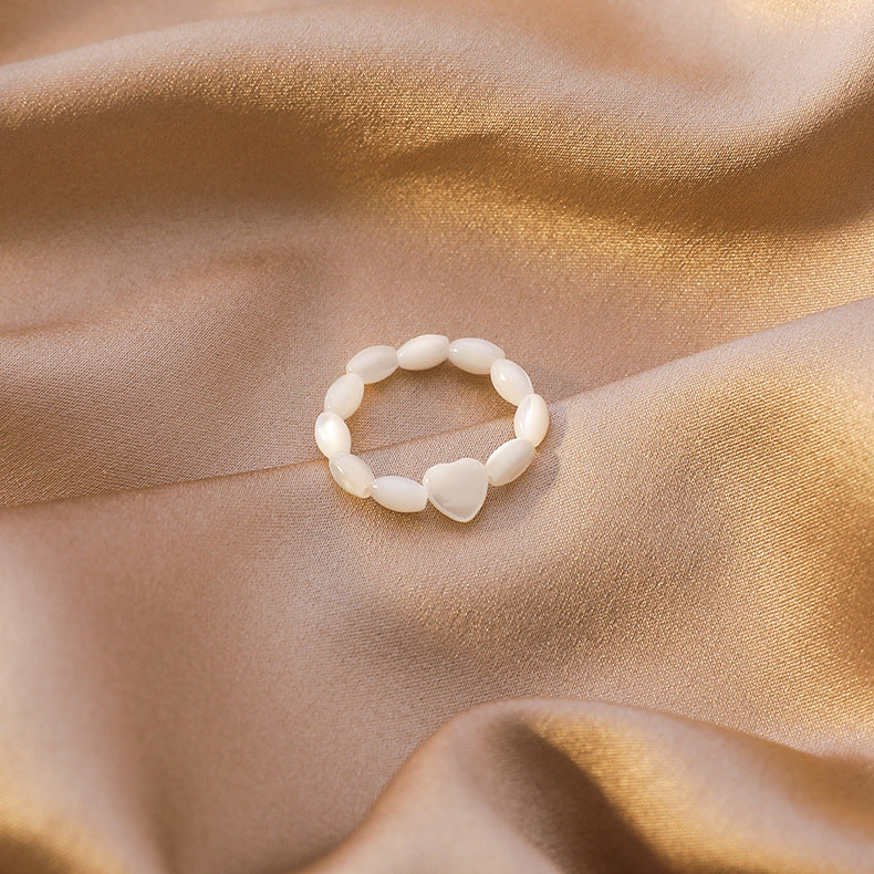 Korean Pearl Shell Heart Stackable Rings for Women - Fashionable Design Index Finger Ring Set