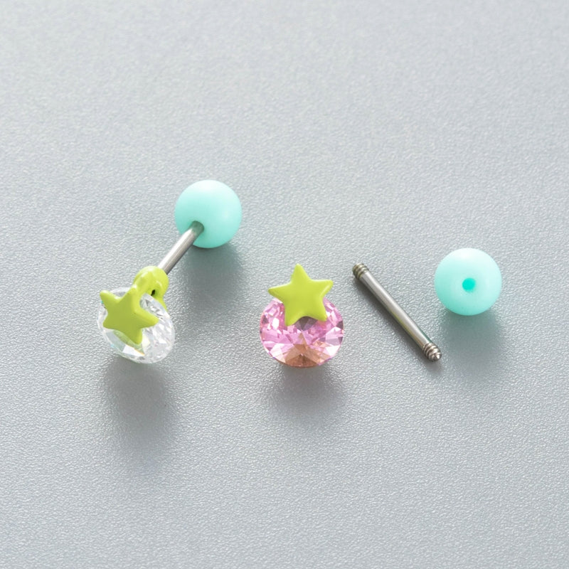Korean Style Star Copper Inlay Zircon Cartilage Piercing Earrings