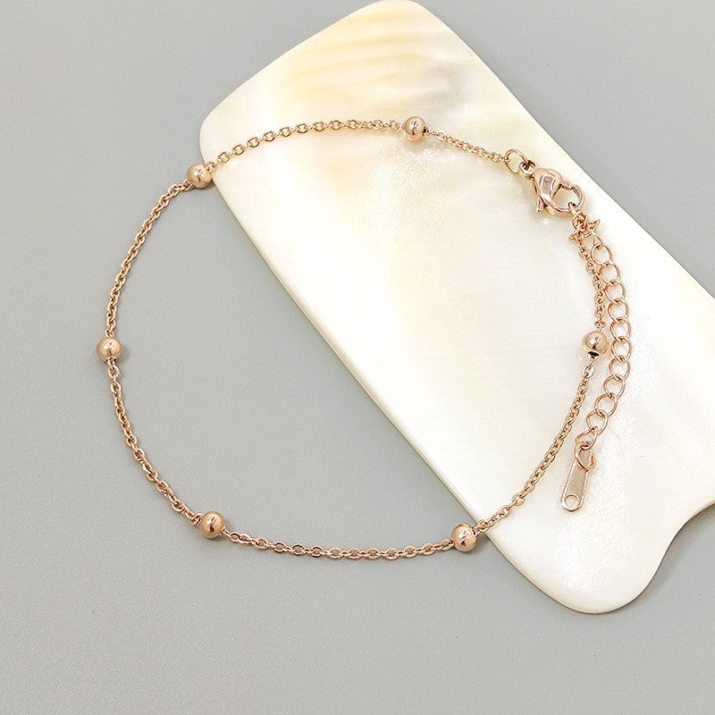 Korean Style Titanium Steel Rose Gold Bead Bracelet Anklet Jewelry