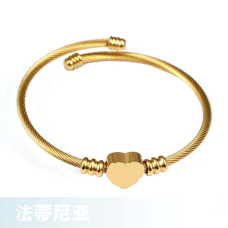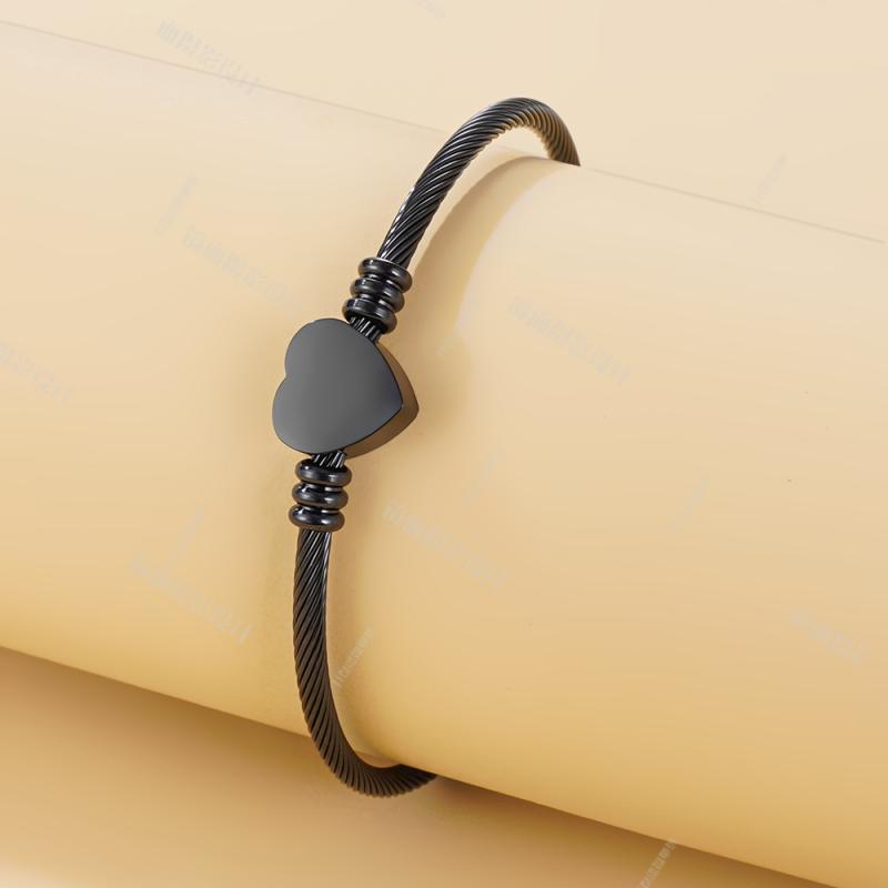 Heart Shape Stainless Steel Cable Bangle Bracelet