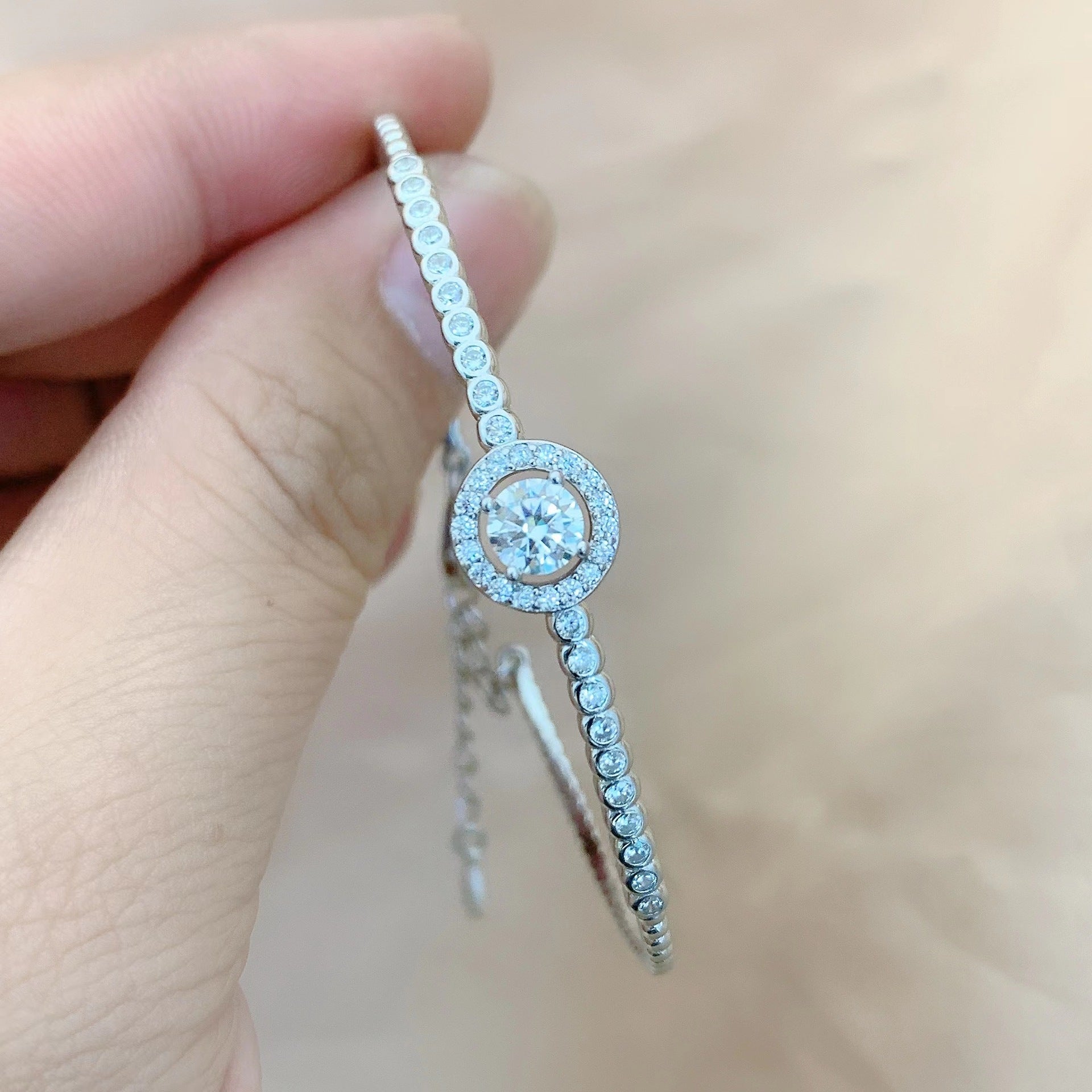 Sterling Silver Moissanite Inlay Bangle Bracelet for Women