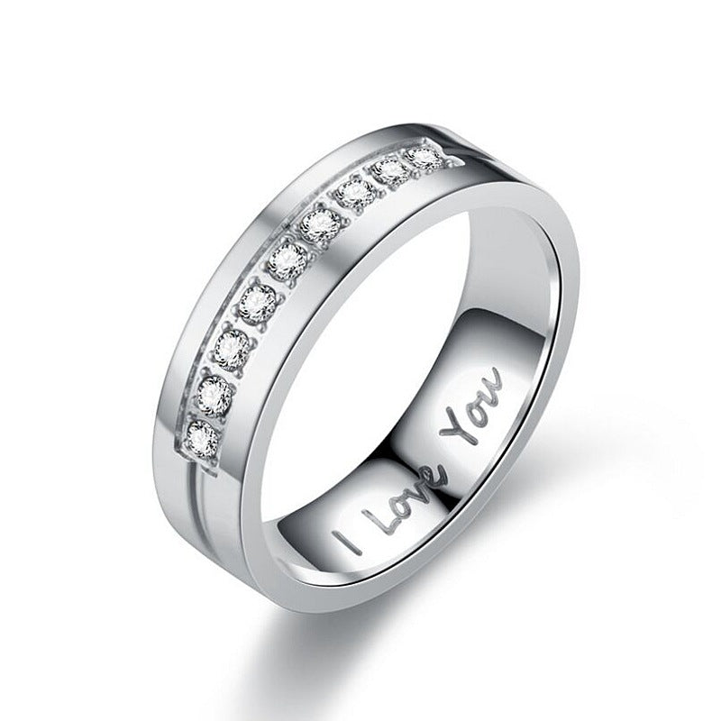 Lettering Stainless Steel Diamond Couple Rings