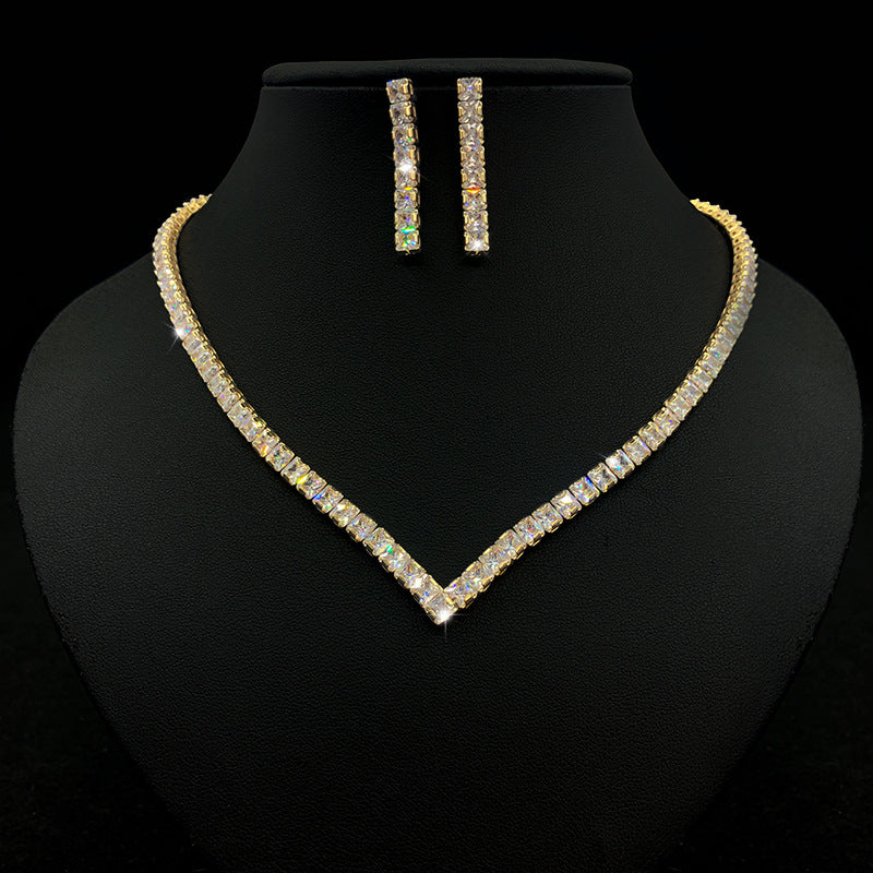 Luxurious Geometric Zircon Women's Jewelry Set - Necklace and Earrings