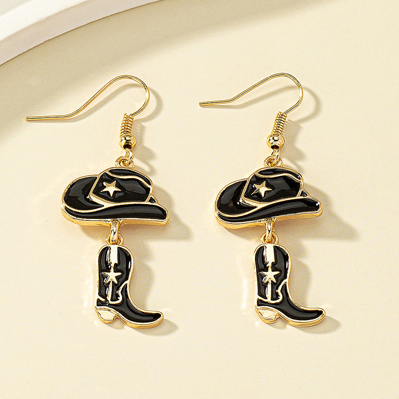 Luxurious Western Star High Heel Gold Plated Cowboy Hat and Boot Drop Earrings