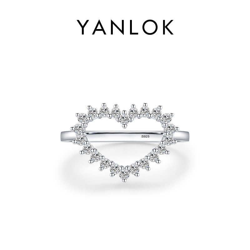 Luxurious Heart Shape Sterling Silver Zircon Inlay Rhodium Plated Ring