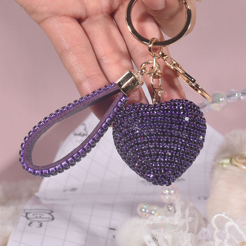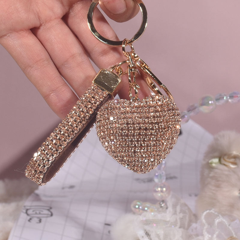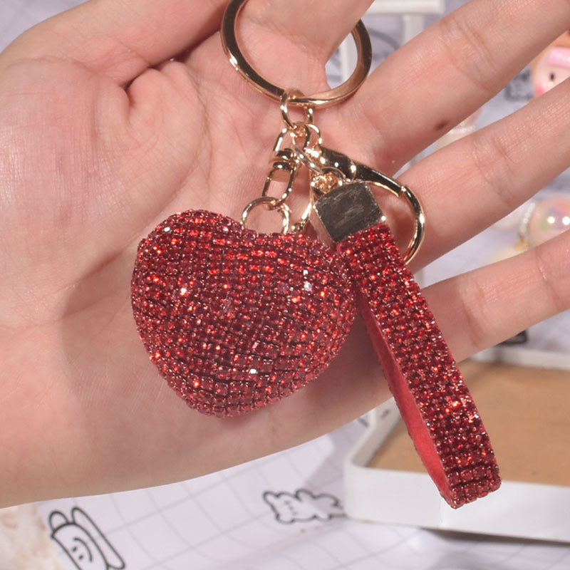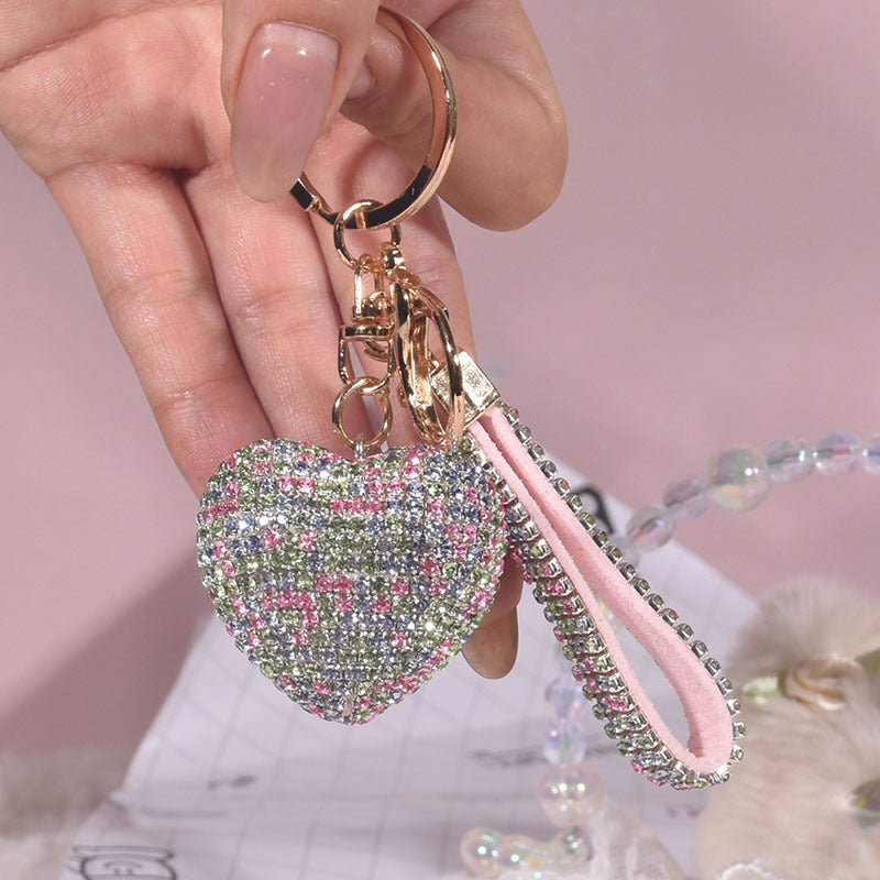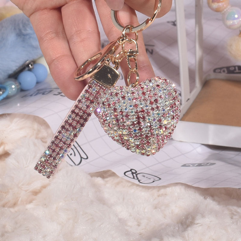 Luxurious Heart Shape Alloy Women's Bag Pendant Keychain with Rhinestone Charm
