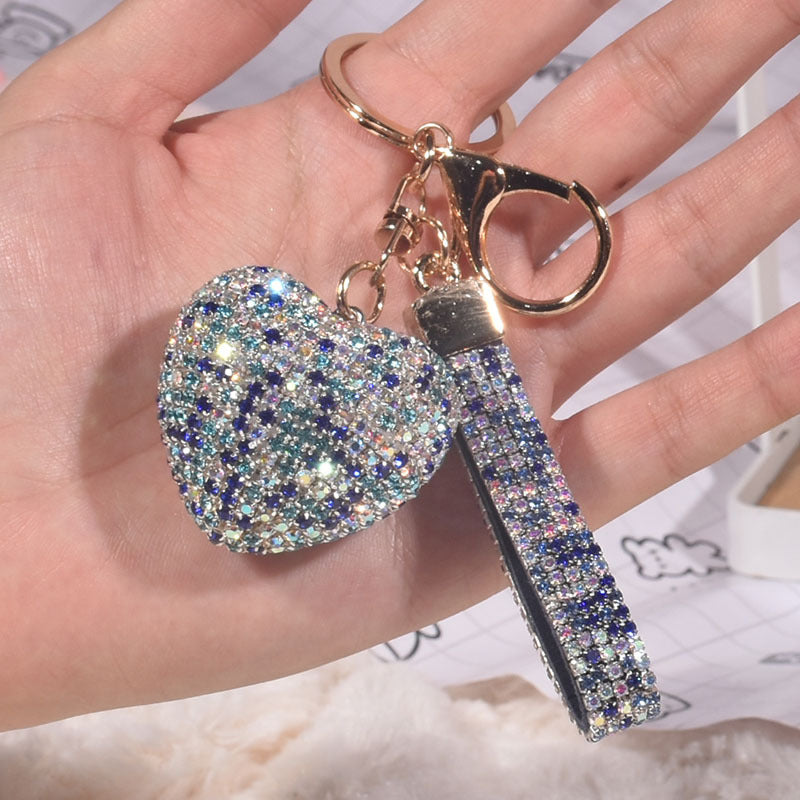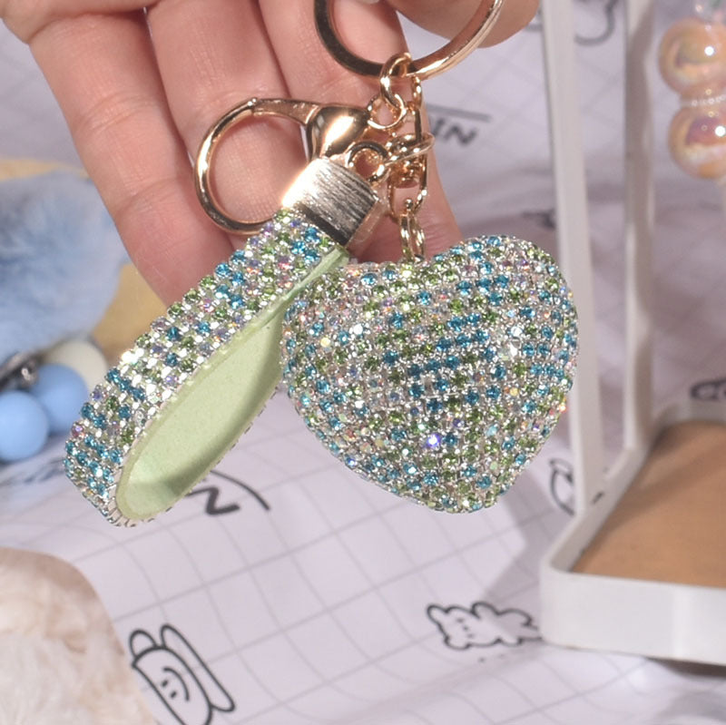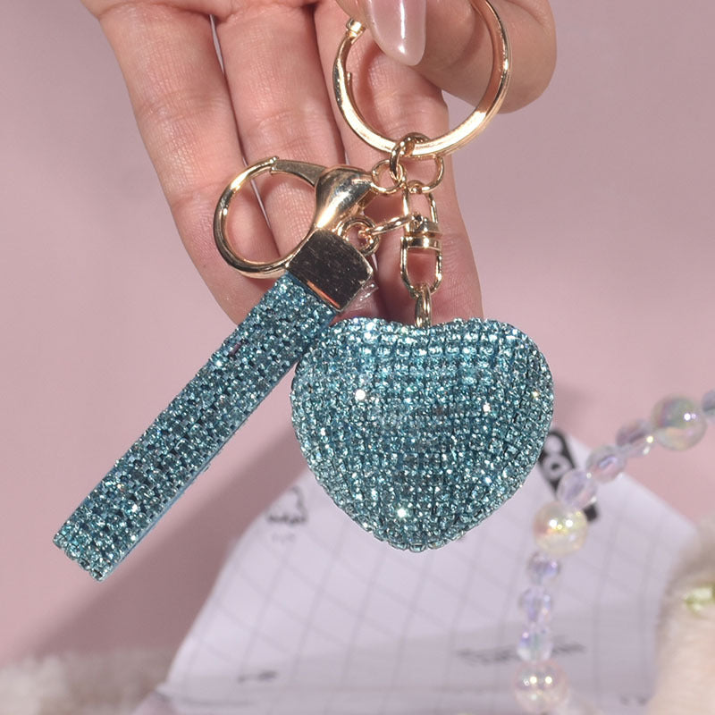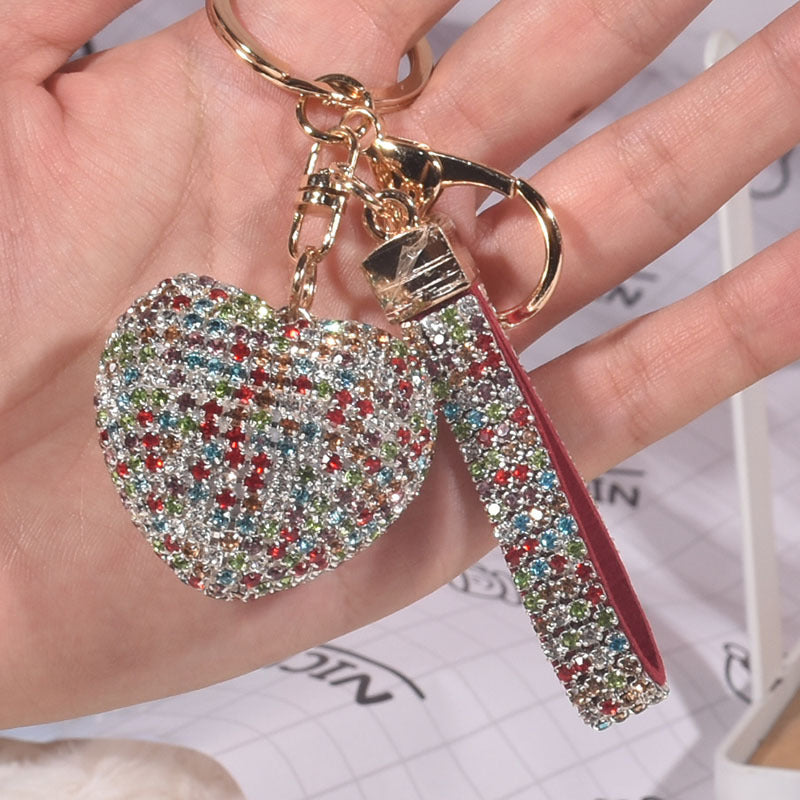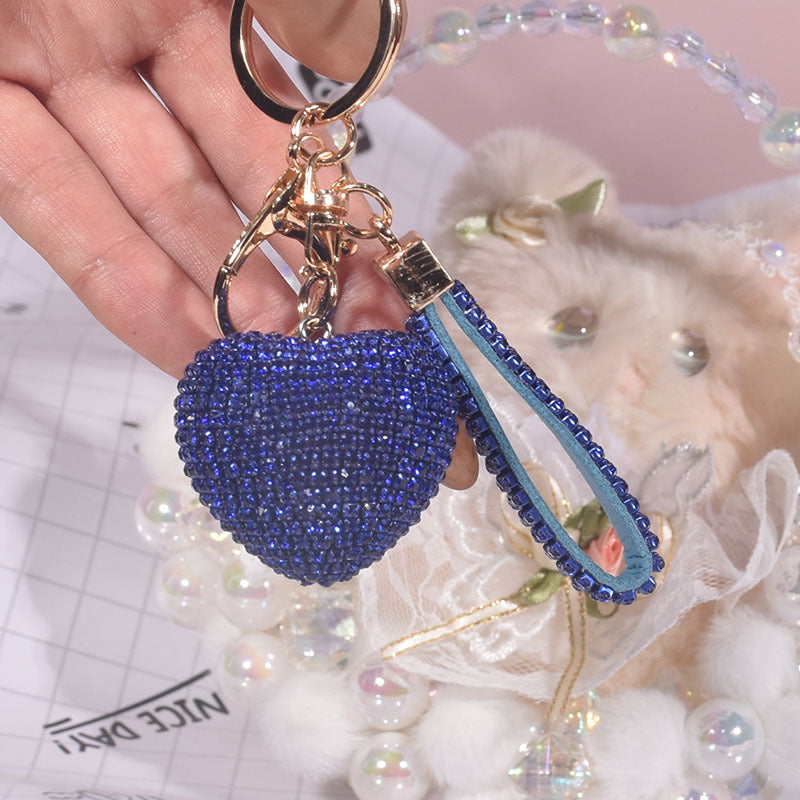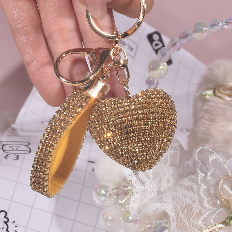 Luxurious Heart Shape Alloy Women's Bag Pendant Keychain with Rhinestone Charm