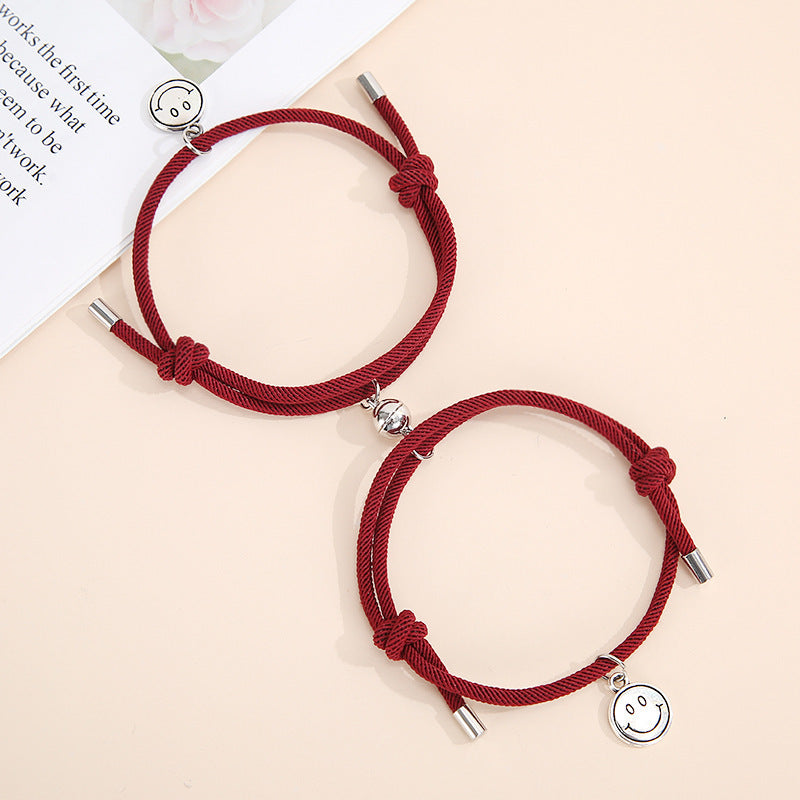 Magnetic Smiley Face Couple Bracelet Set - Handmade Woven Jewelry