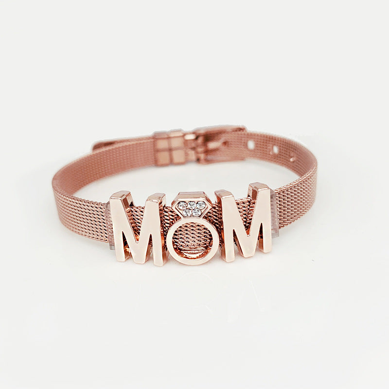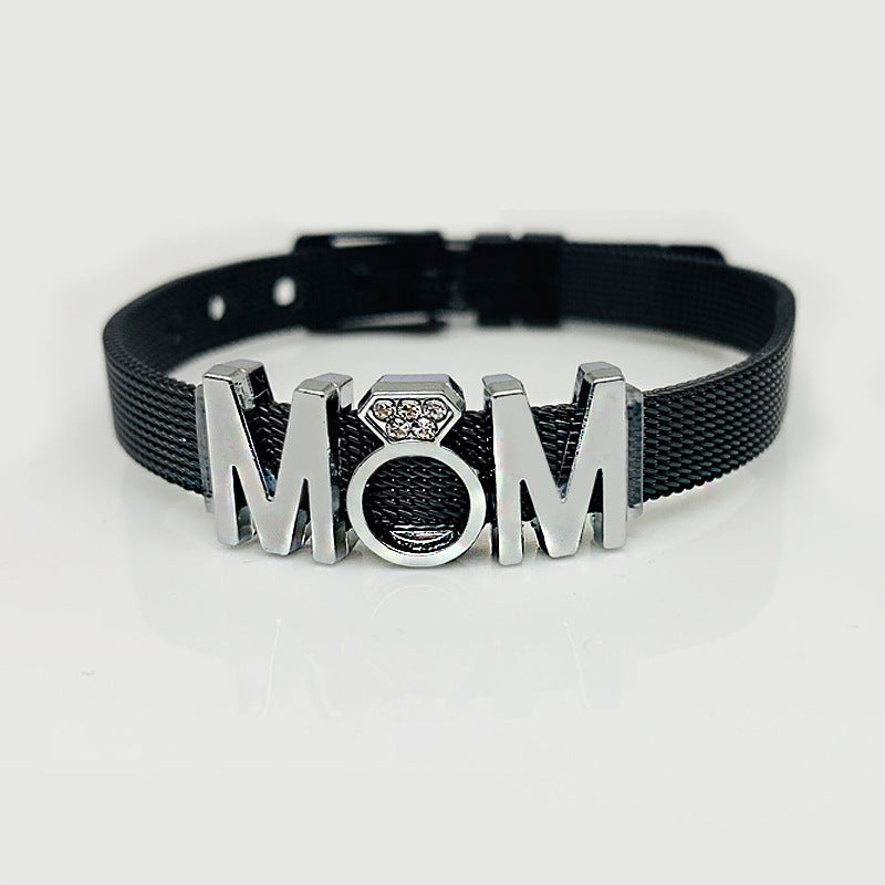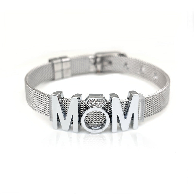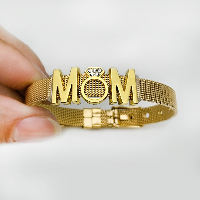 Mama Letter Stainless Steel Rhinestone Inlay Bracelet - Mother's Day Gift