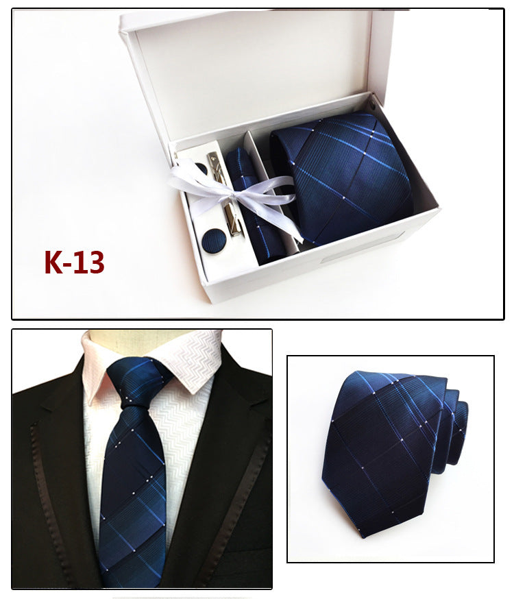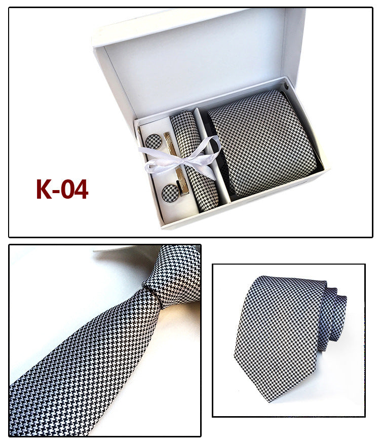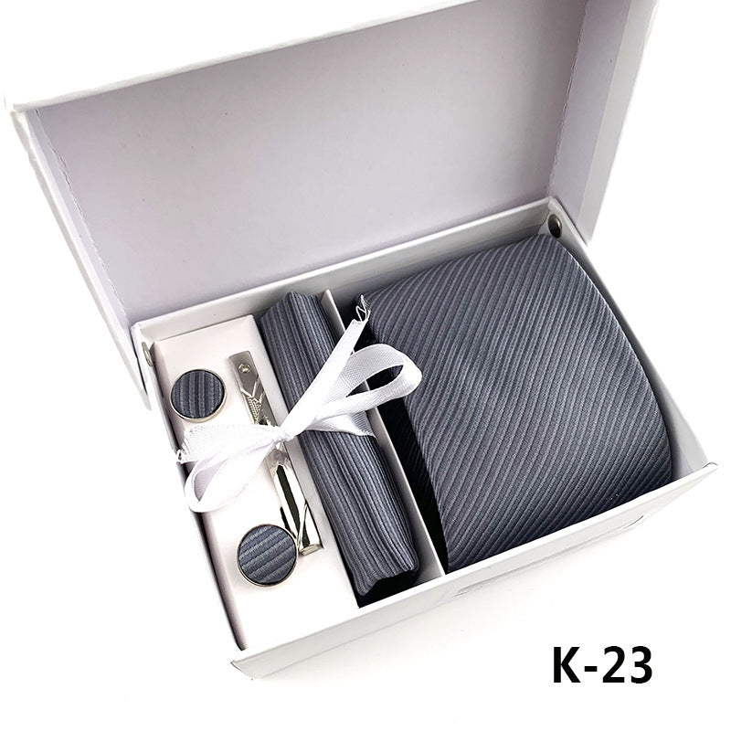Men's 6-Piece Tie Set with Pocket Square and Clip Gift Box