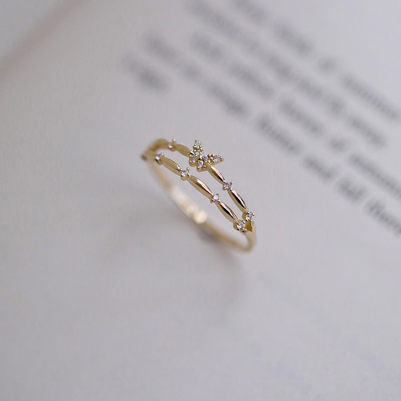 Modern Butterfly 18K Gold Plated Sterling Silver Ring with Inlay Gemstones