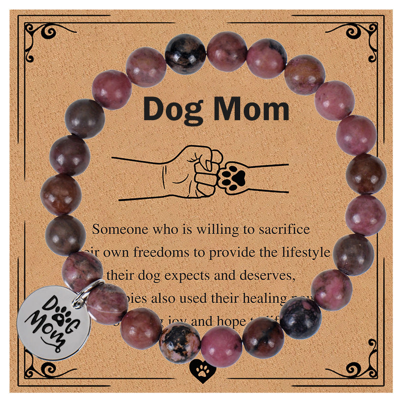 Modern Animal Paw Print Natural Stone Dog Mom Bracelet