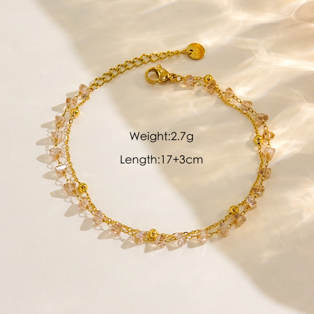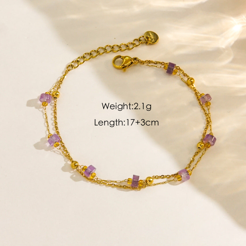 Modern Geometric Flower 14K Gold Plated Stainless Steel Bracelet with Natural Stone, Freshwater Pearl, Shell, and Zircon Elements
