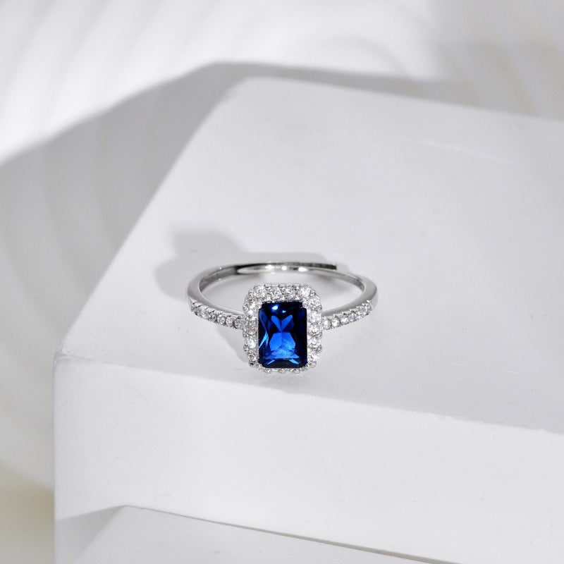 Modern Square Sterling Silver Zircon Inlay Open Ring