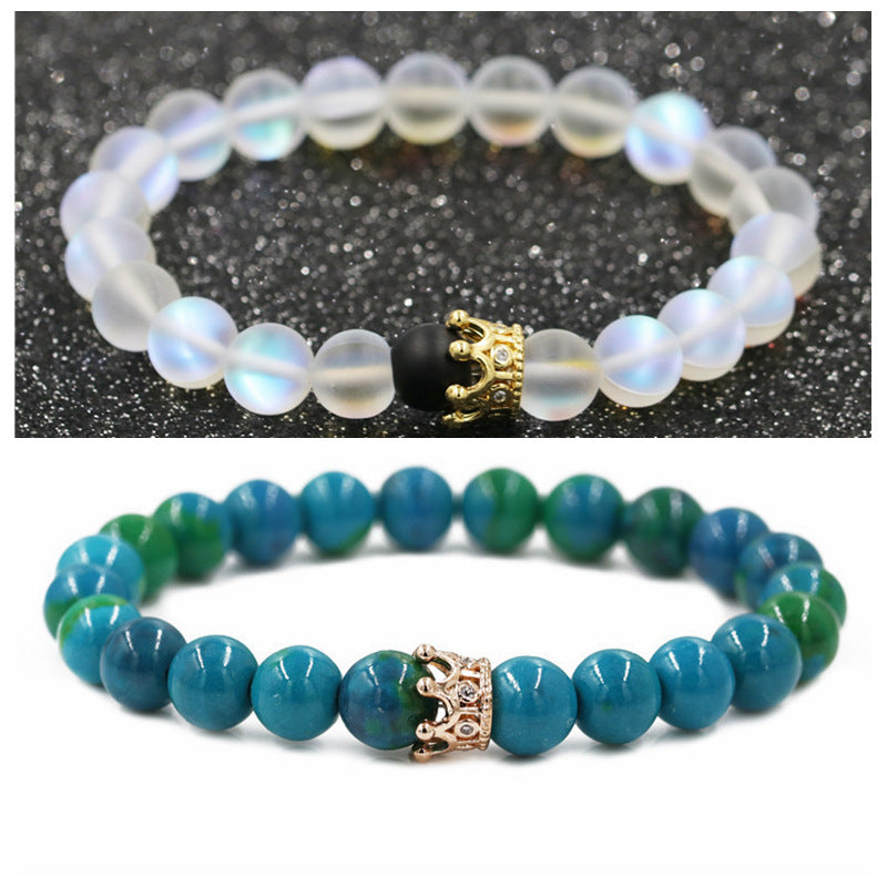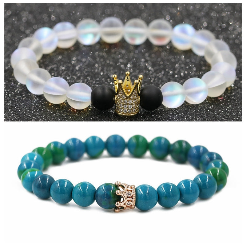 Moonstone Frosted Crown Beaded Couple Bracelet