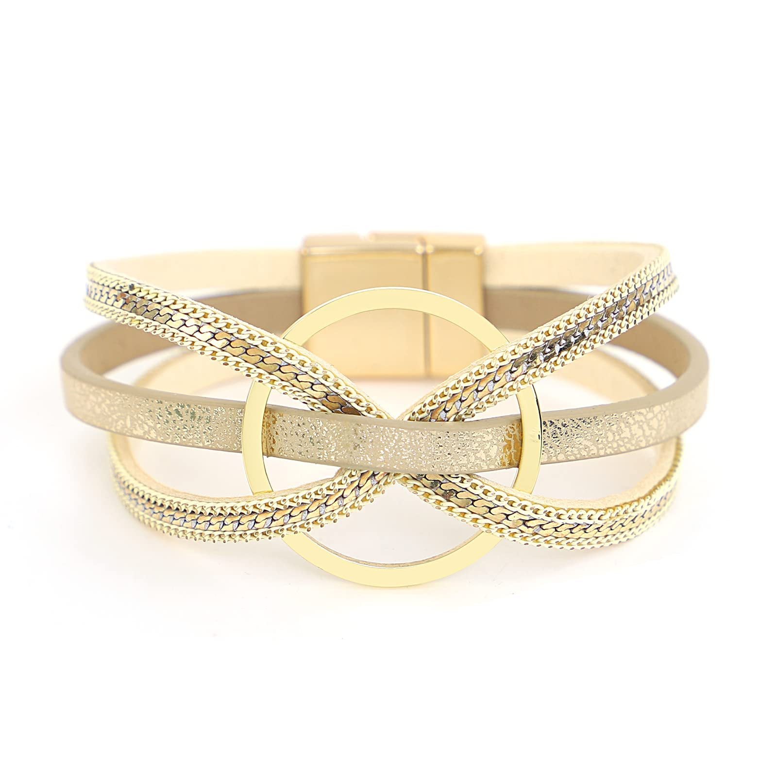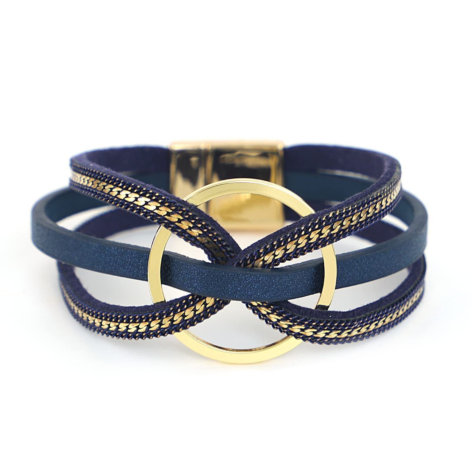 Multilayer Geometric Alloy Circle Magnetic Leather Bracelet for Women