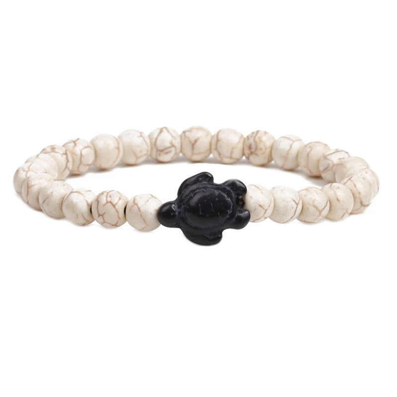Natural Stone Geometric Hematite and Turquoise Turtle Bracelet