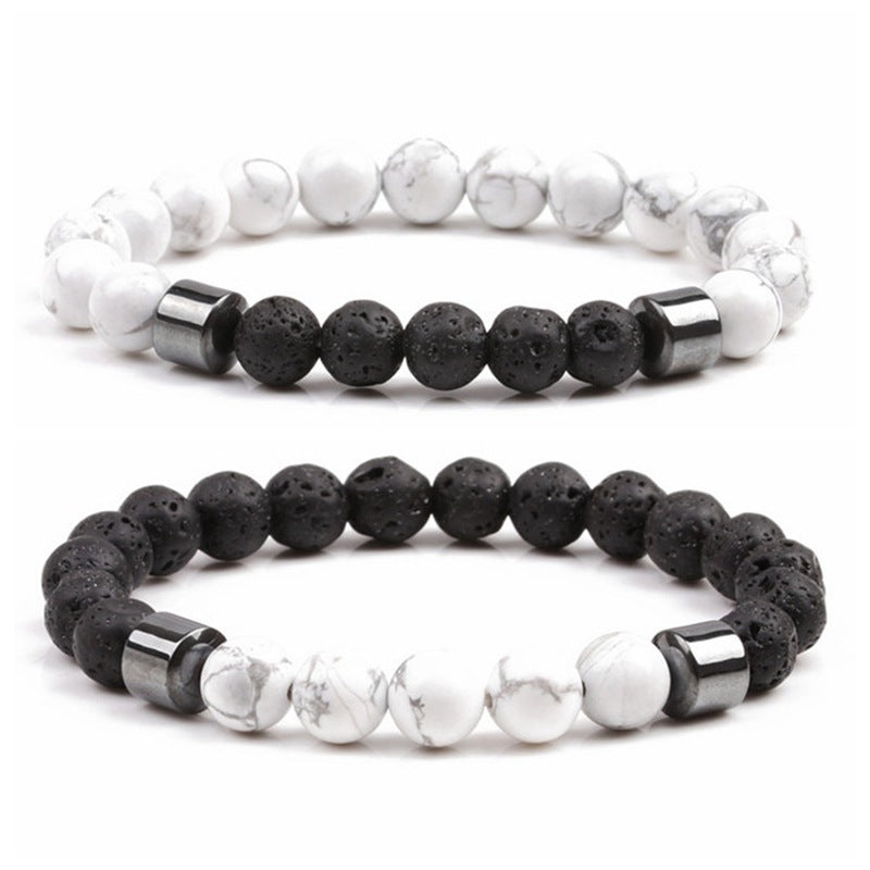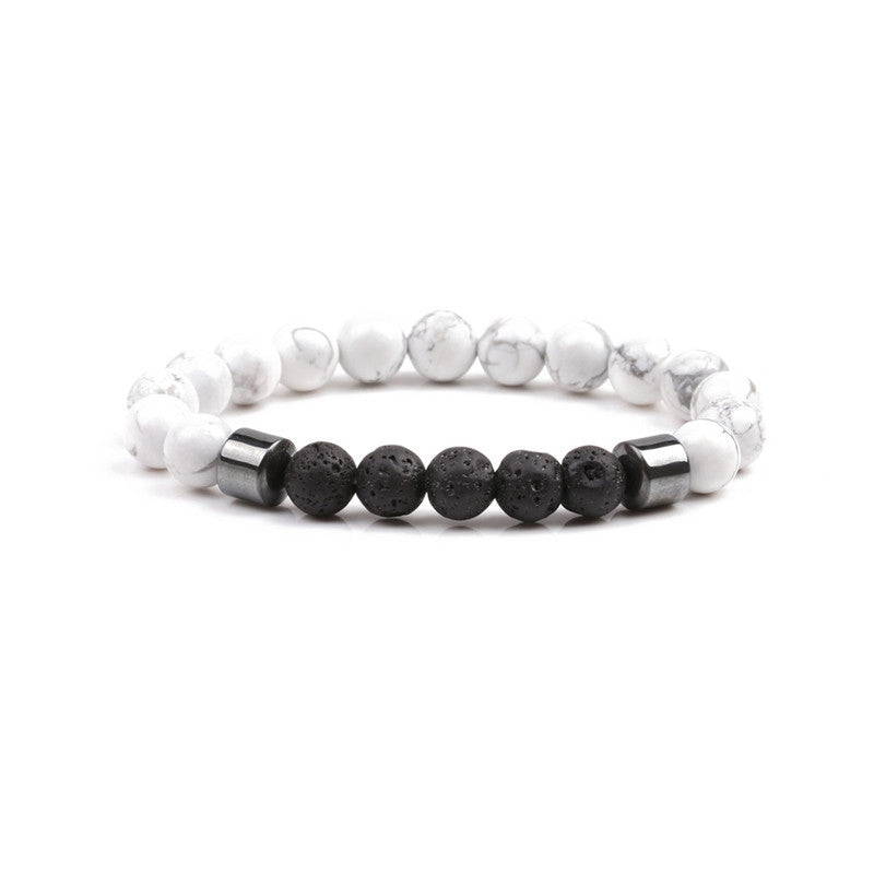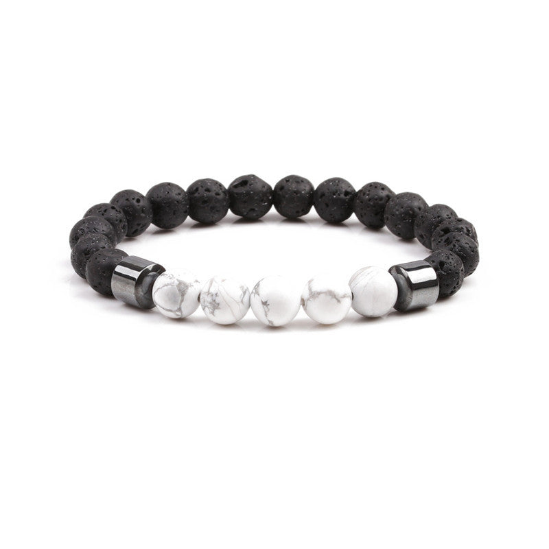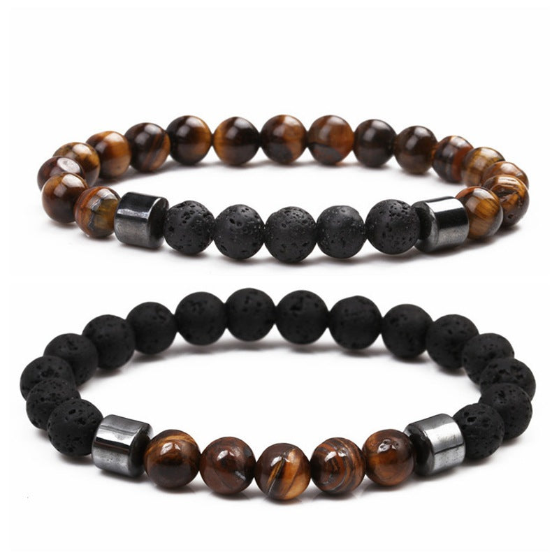 Natural Stone Geometric Beaded Bracelet with Tiger Eye and Volcanic Stone