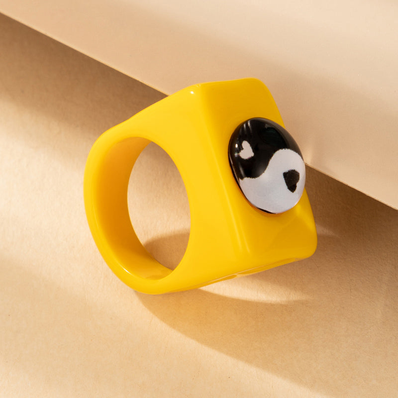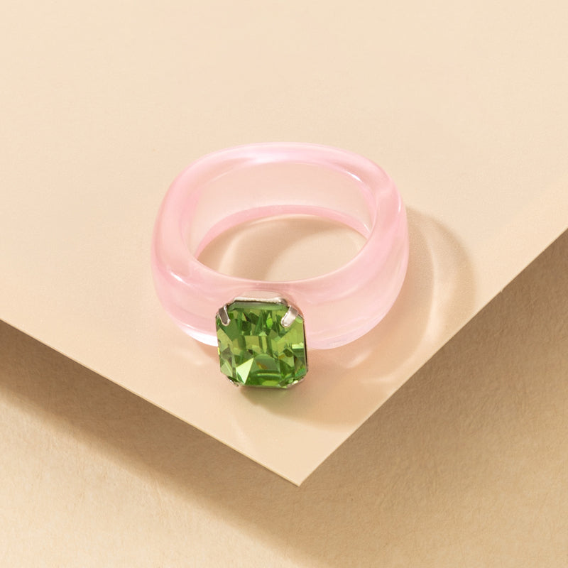Retro Gemstone Resin Ring Set with Green Painted Beaded Fruit Pearl Rings