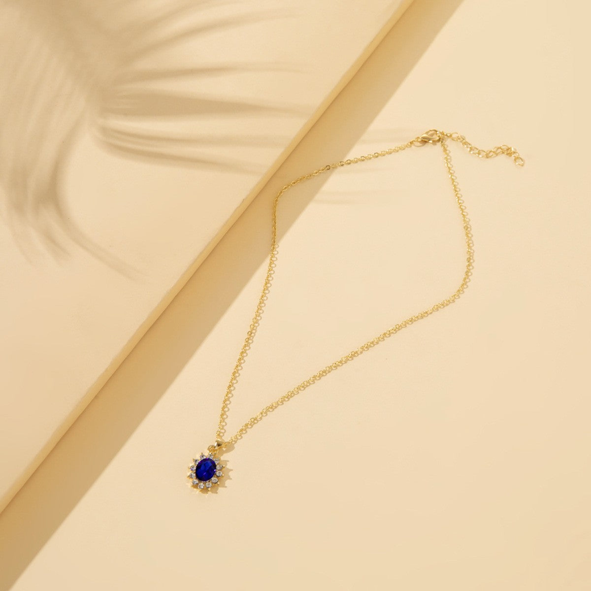Creative Retro Geometric Sun Pendant Necklace - Pink Alloy with Diamond Accents