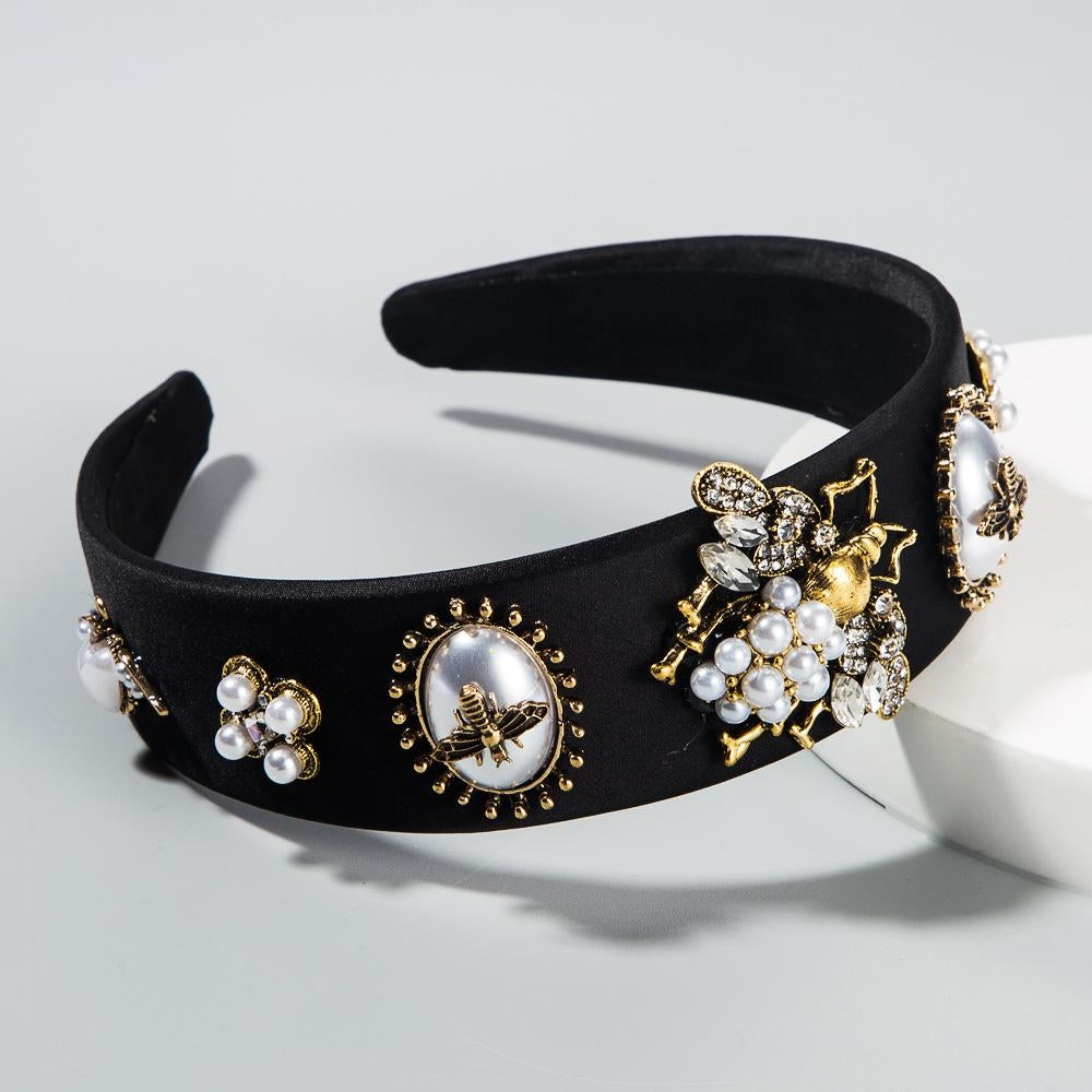 Luxury Bee Rhinestone & Pearl Baroque Wide Headband