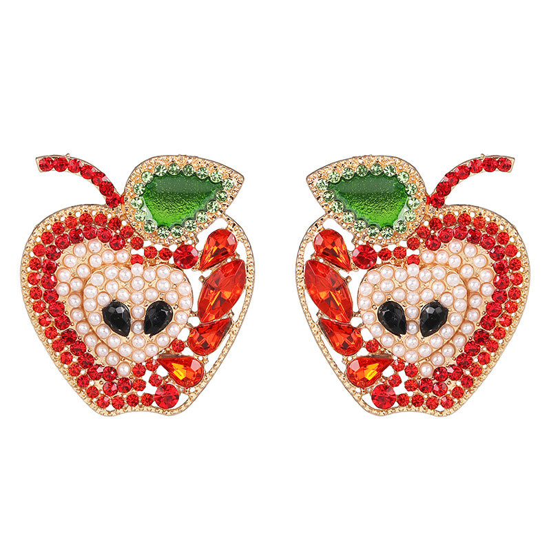 New Apple Fruit Diamond Stud Earrings Wholesale