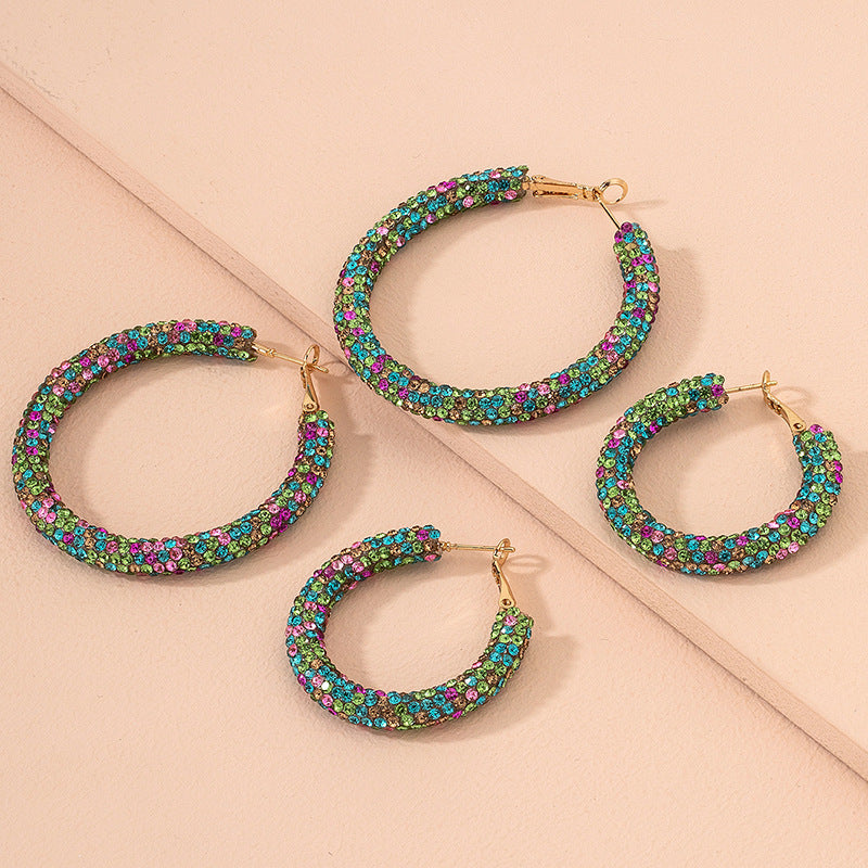 Geometric Circle Diamond Stud Earrings in Pastel Colors