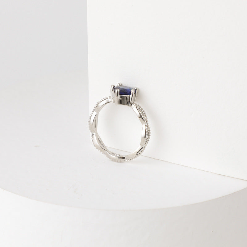Heart Gemstone Twist Cross Hollow Copper Zircon Ring