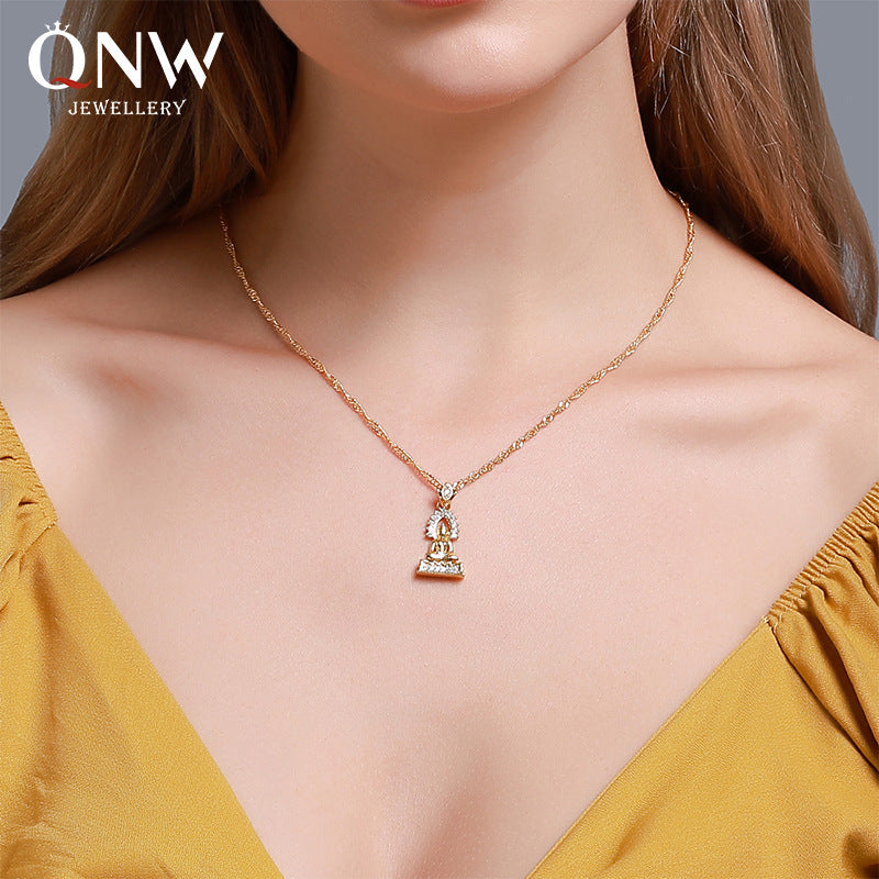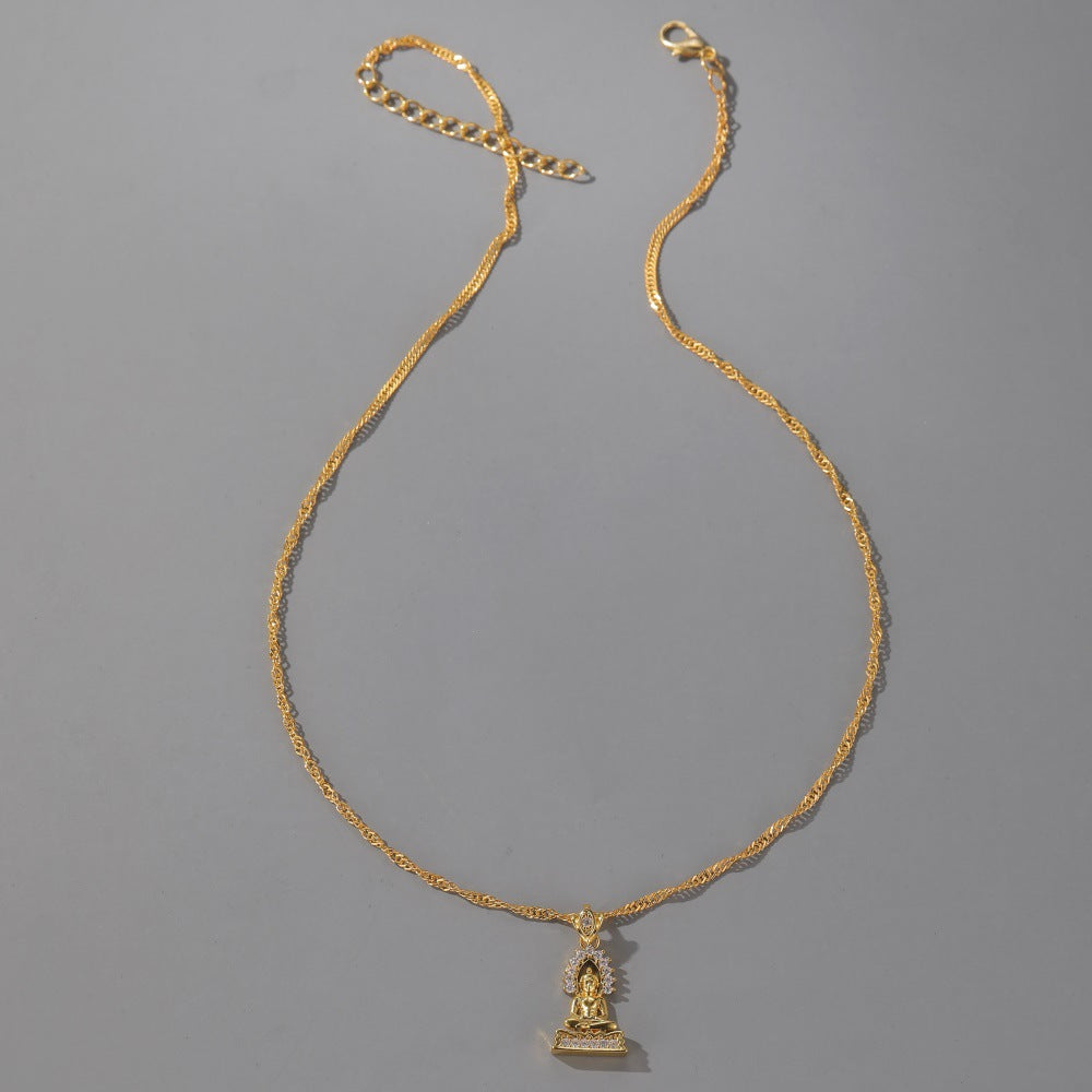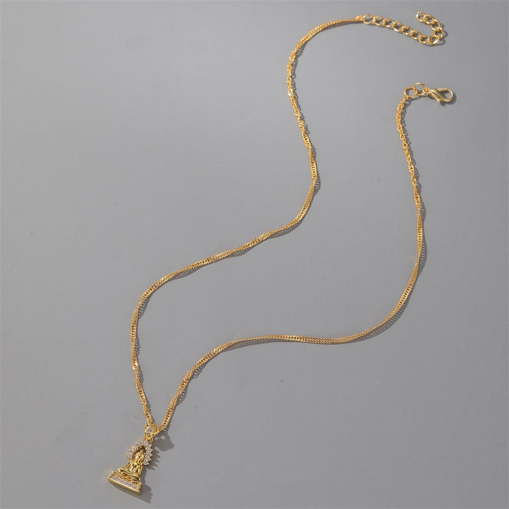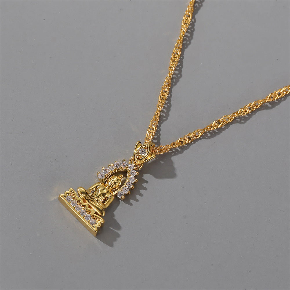 Thailand Gold Plated Buddha Pendant Necklace with Zircon Maitreya Buddha Clavicle Chain