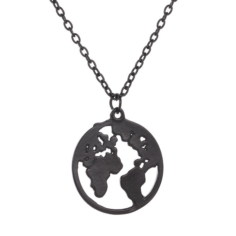 Round World Map Pendant Necklace - Minimalist Unisex Design