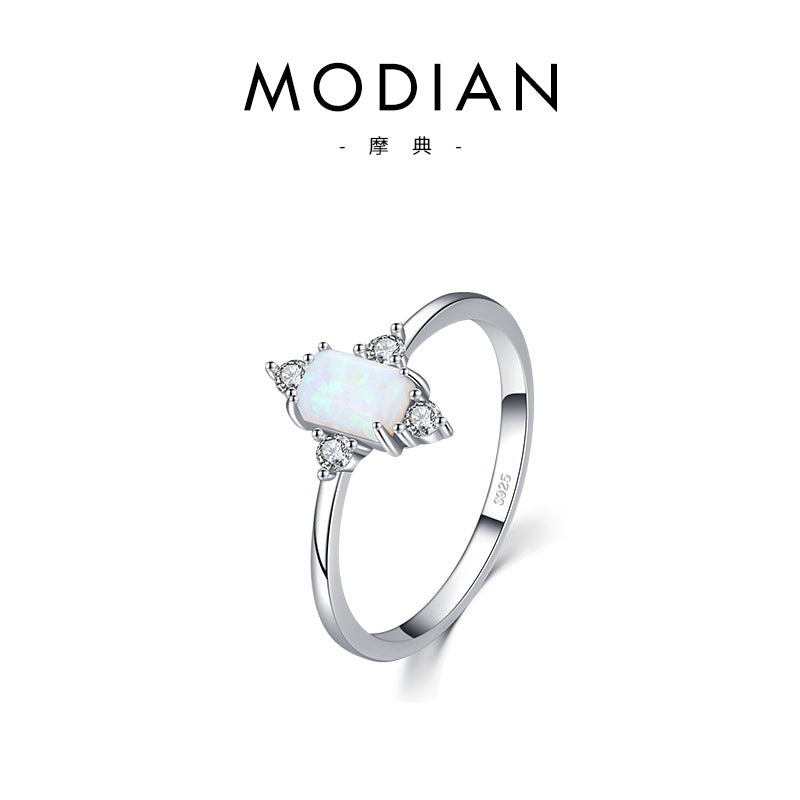 S925 Sterling Silver Retro Opal Inlaid Fashion Ring for Women