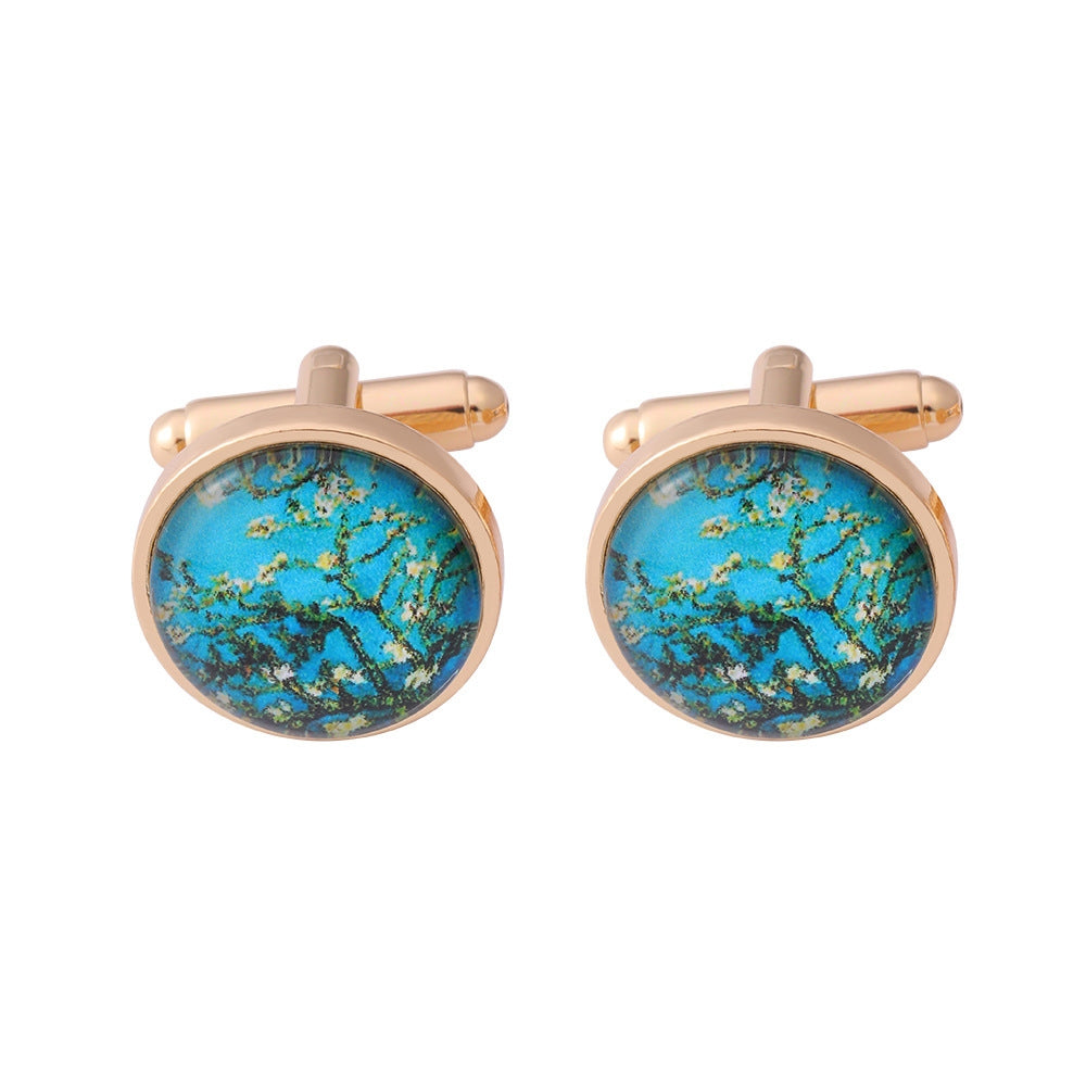 Tree of Life Starry Night Time Stone Titanium Steel Cufflinks