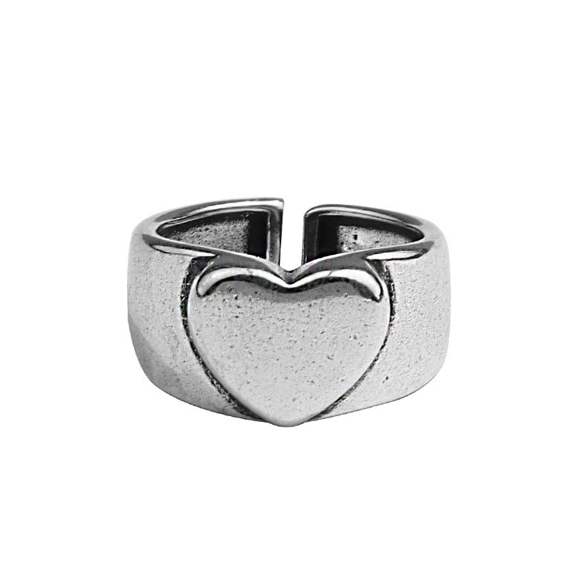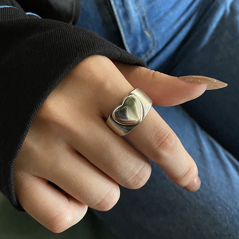 Niche Vintage Heart Adjustable Wide Band Ring for Women