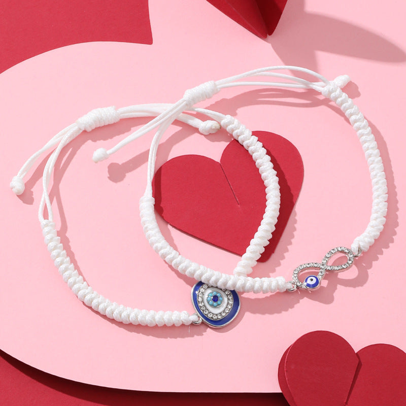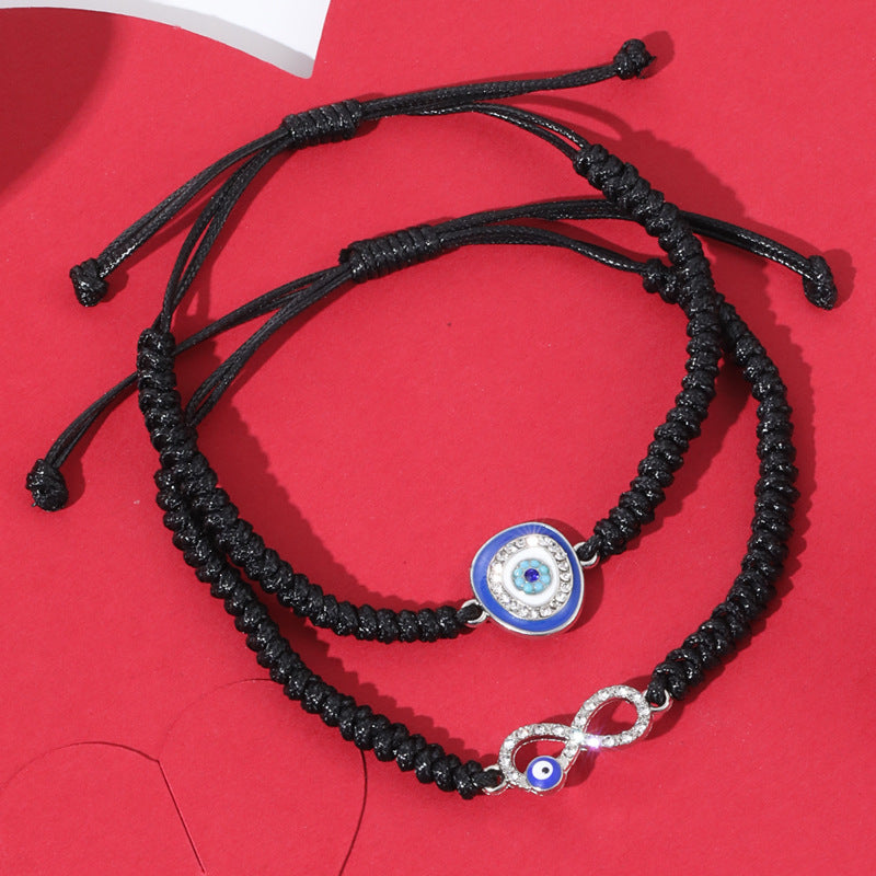 Infinity Evil Eye Alloy Bracelet with Artificial Diamonds - Handmade Couples & Friendship Gift