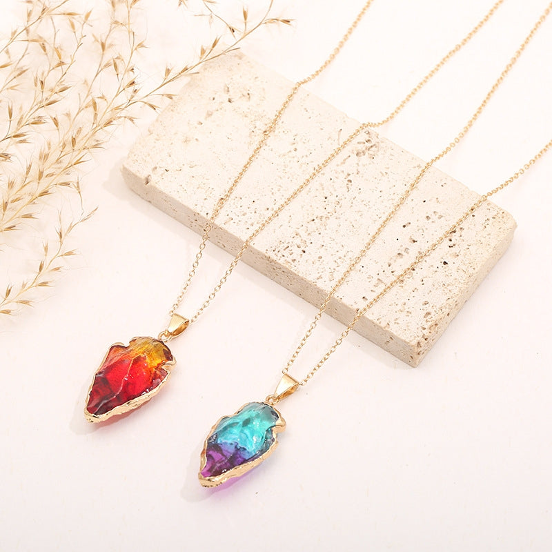 Gold Plated Natural Stone Crystal Water Droplet Pendant Necklace