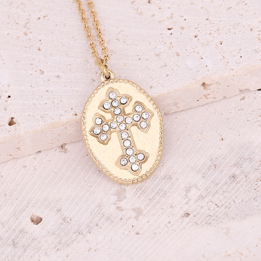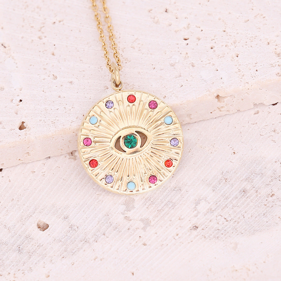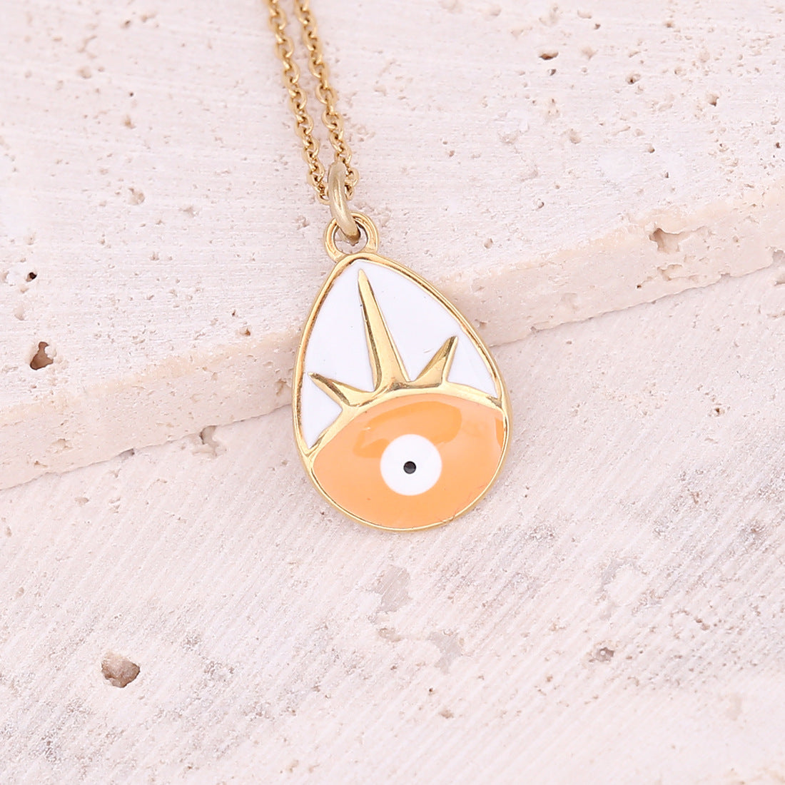 Oil Dripping Eye Pendant Stainless Steel Geometric Cross Necklace with Moon Clavicle Chain