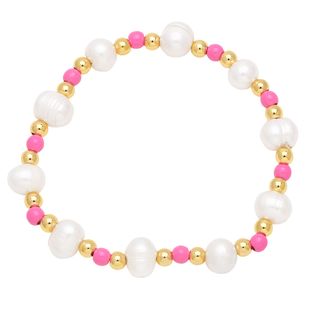18k Gold Plated Baroque Pearl and Colorful Beaded Women's Bracelet