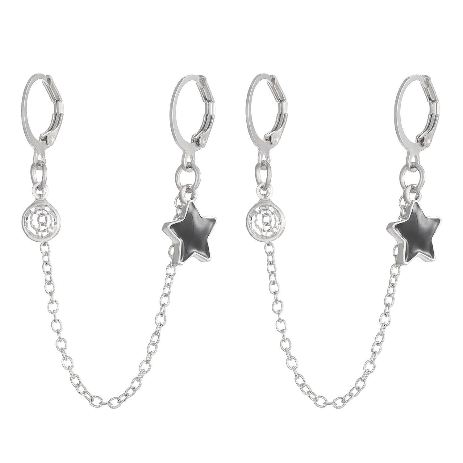 Pentagram Enamel Rhinestone Drop Earrings - Black Star Design