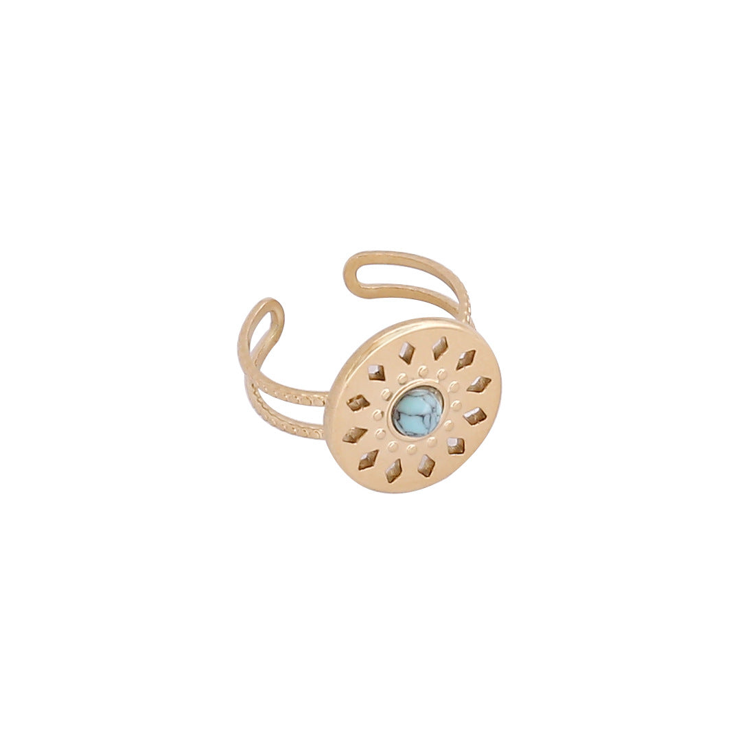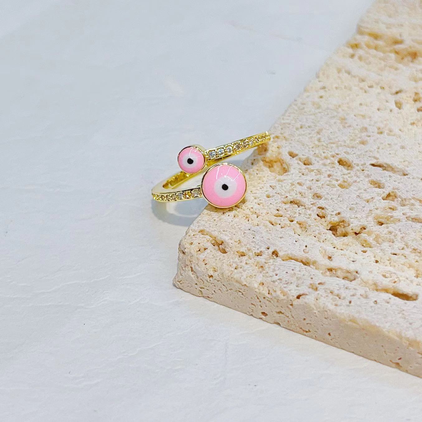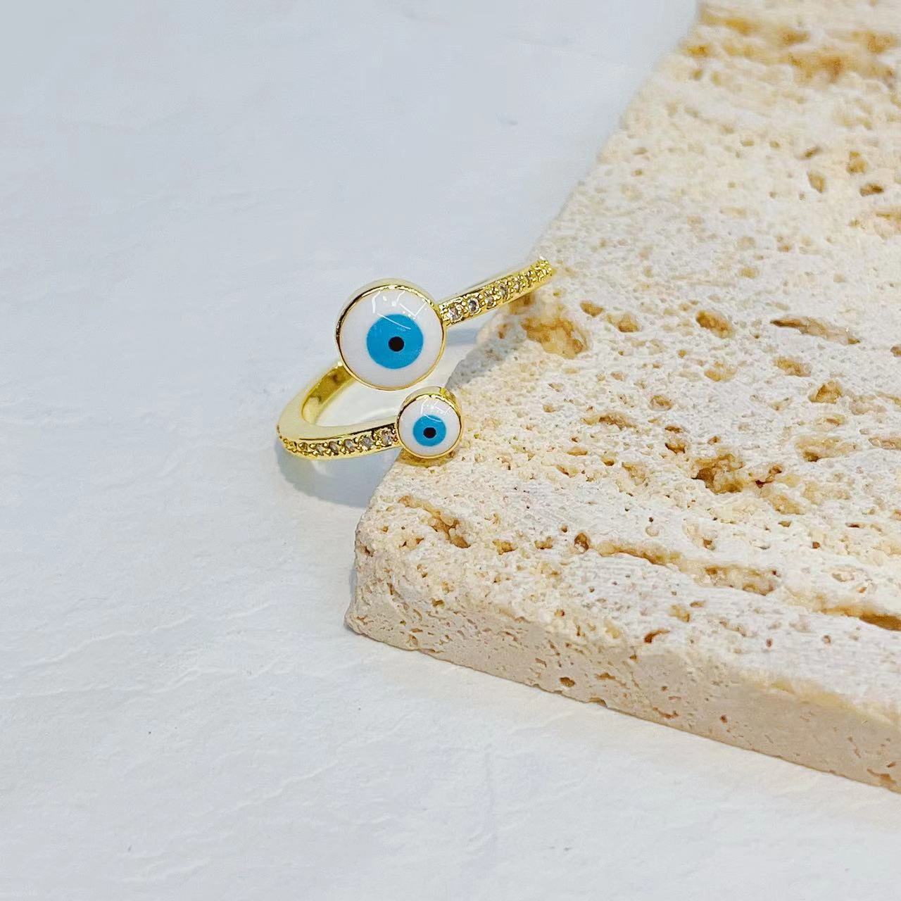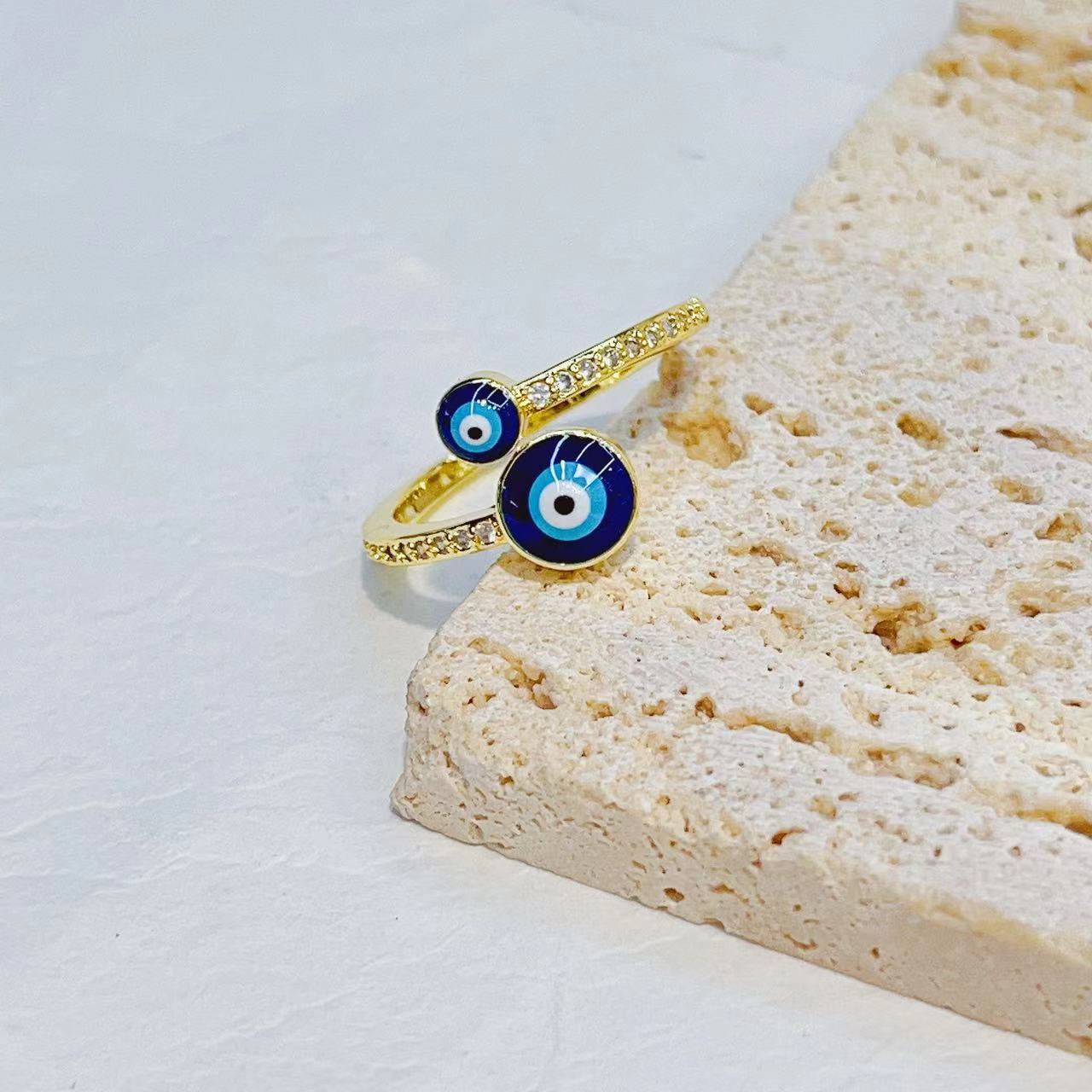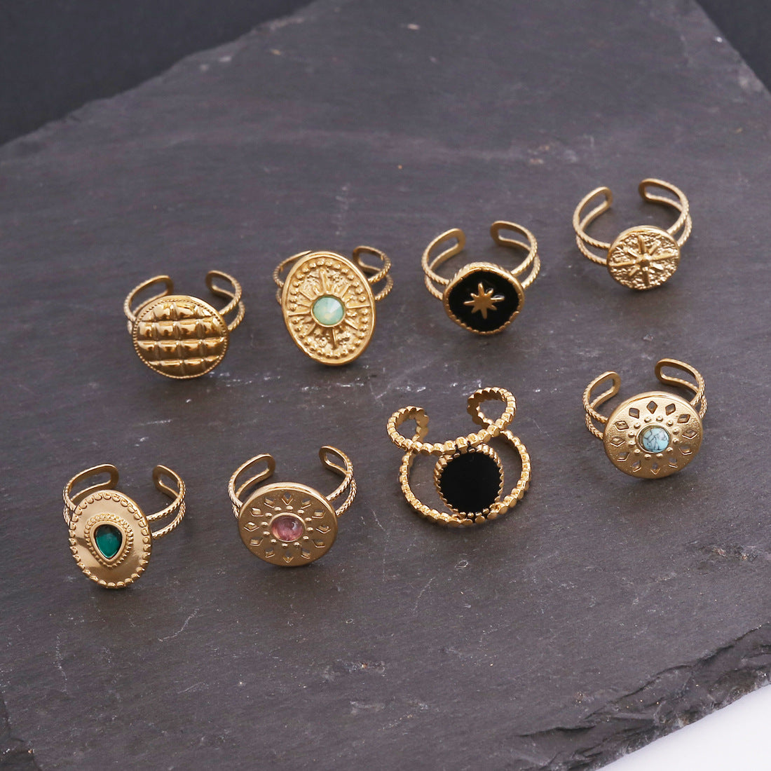Stainless Steel Retro Natural Stone Evil Eye Adjustable Ring for Women